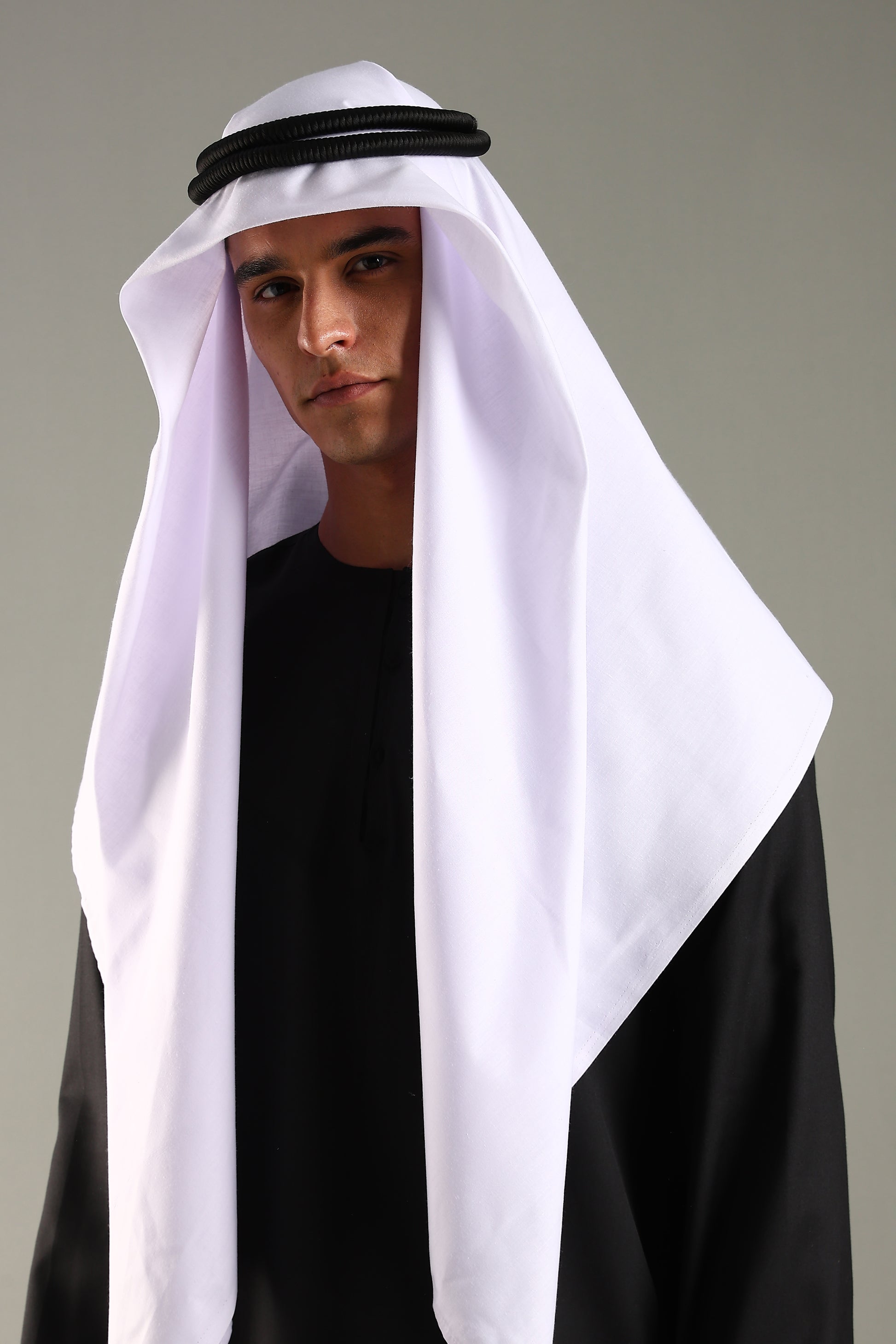 Experience the ultimate in traditional luxury with the Kutubali 7 Star White Ghutra (or Shemagh). Distinguished by its incredibly smooth texture and pristine finish, this headscarf embodies quiet elegance. It features a plain, un-textured weave that results in a cleaner, more fluid drape than traditional patterned styles, perfect for a refined and formal look.