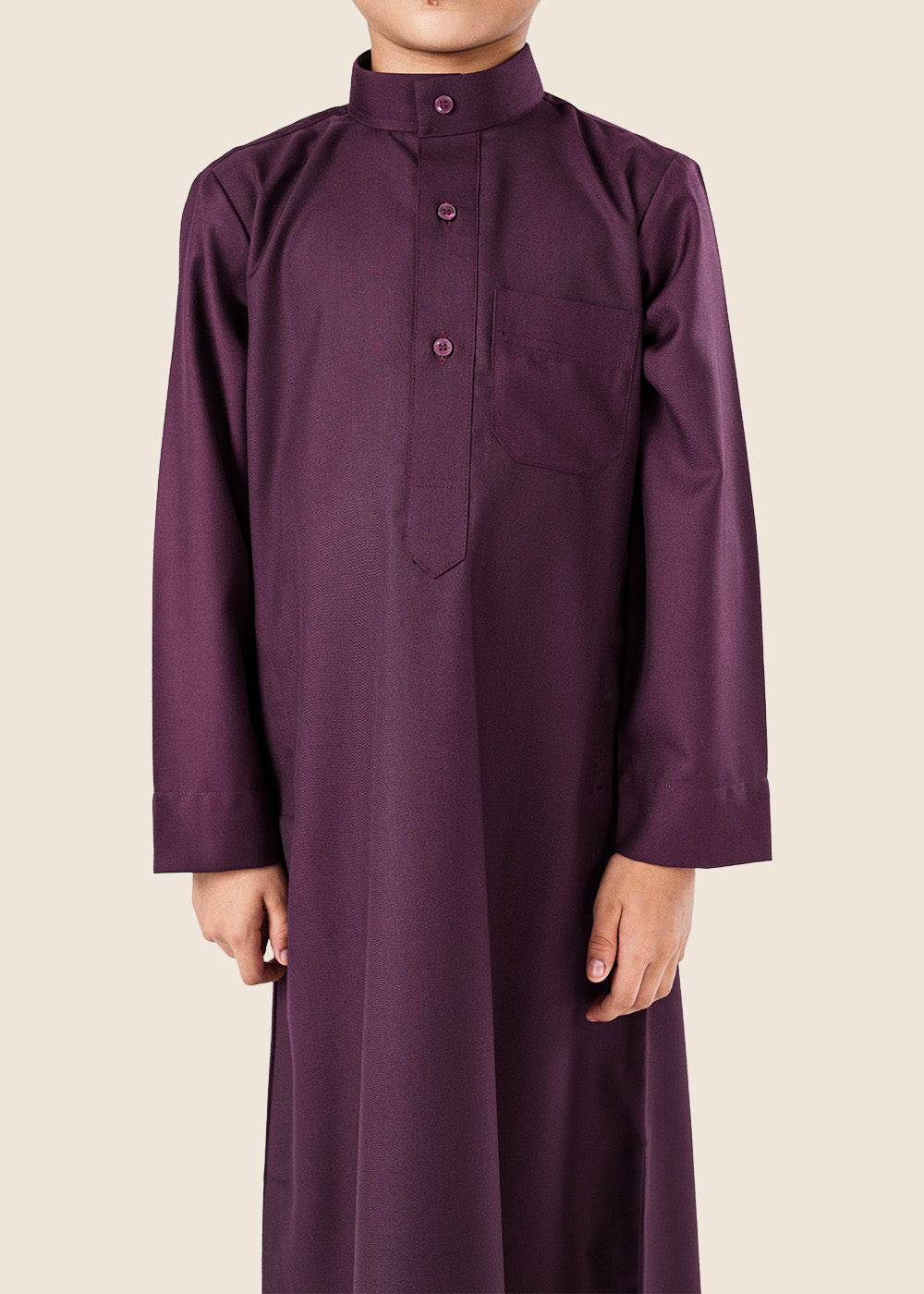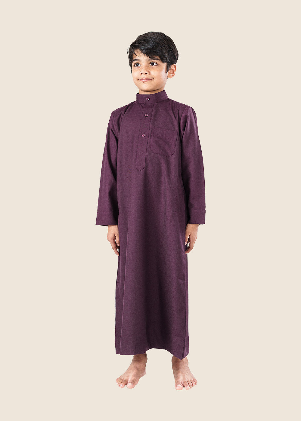 Introducing the Everyday Saudi Plum Purple Thobe, designed in the classic Saudi style. Made from premium TR cotton, this thobe features a sturdy mandarin collar, two side pockets, and one front pocket, combining practicality with elegance. Perfect for daily wear, the Everyday Saudi Thobe offers both comfort and sophistication.