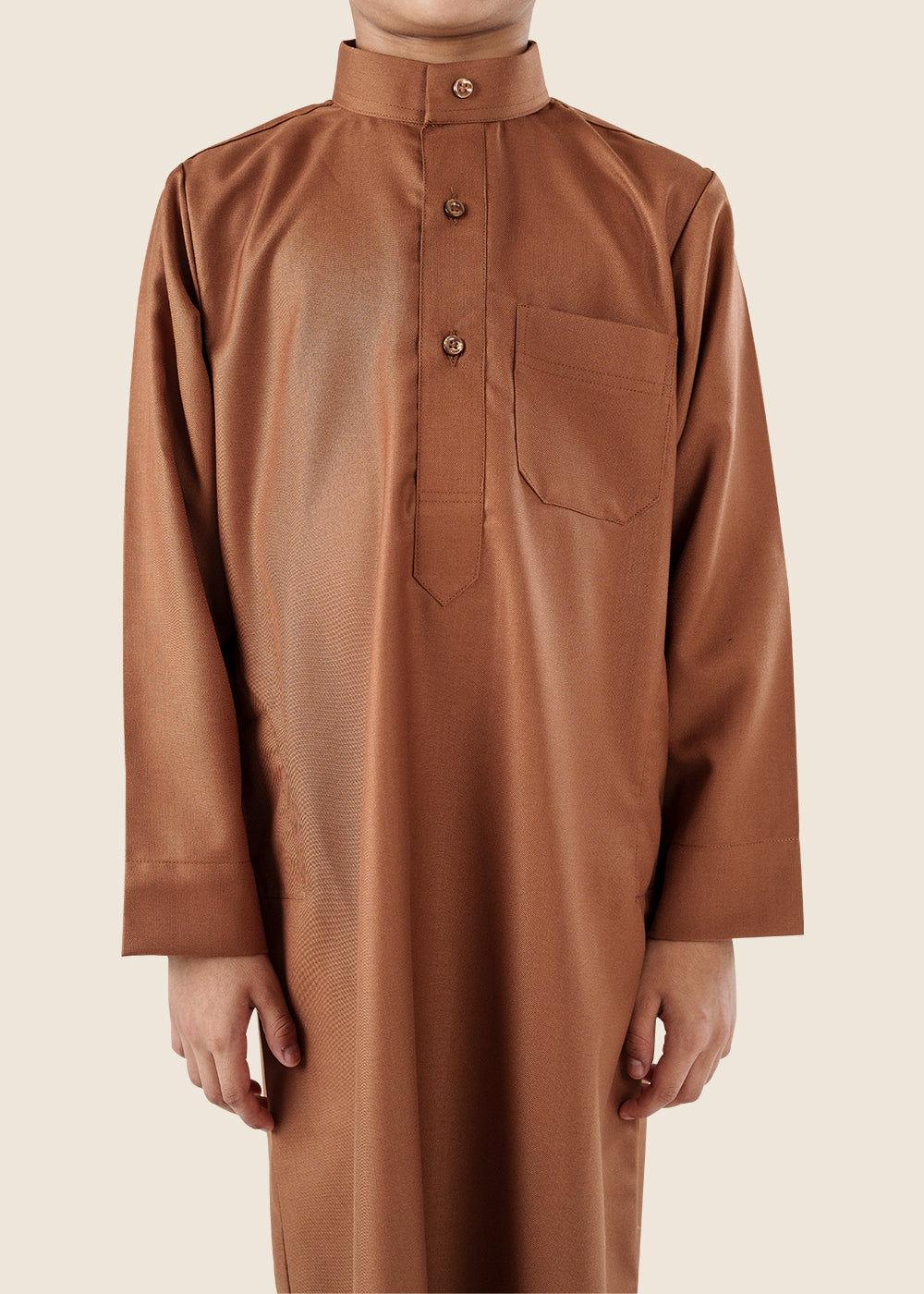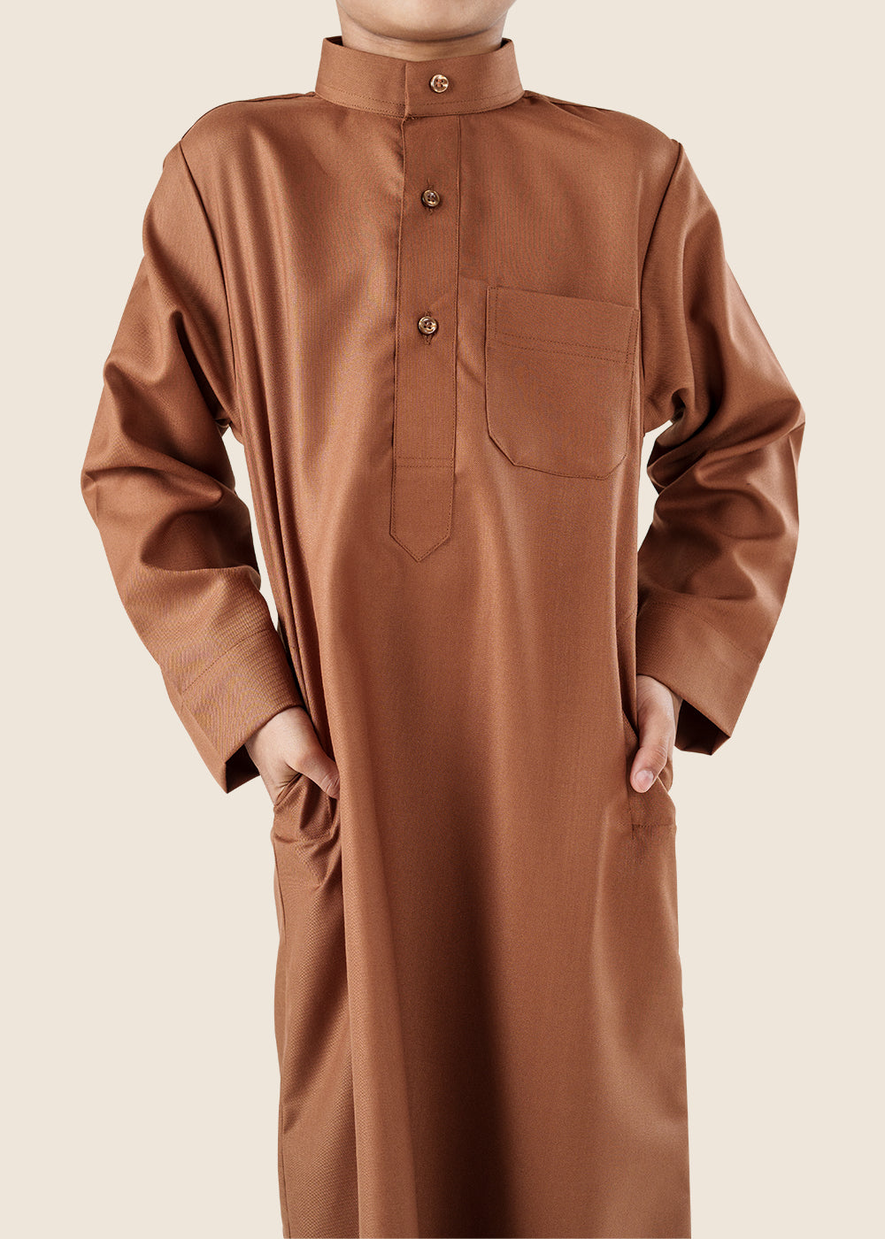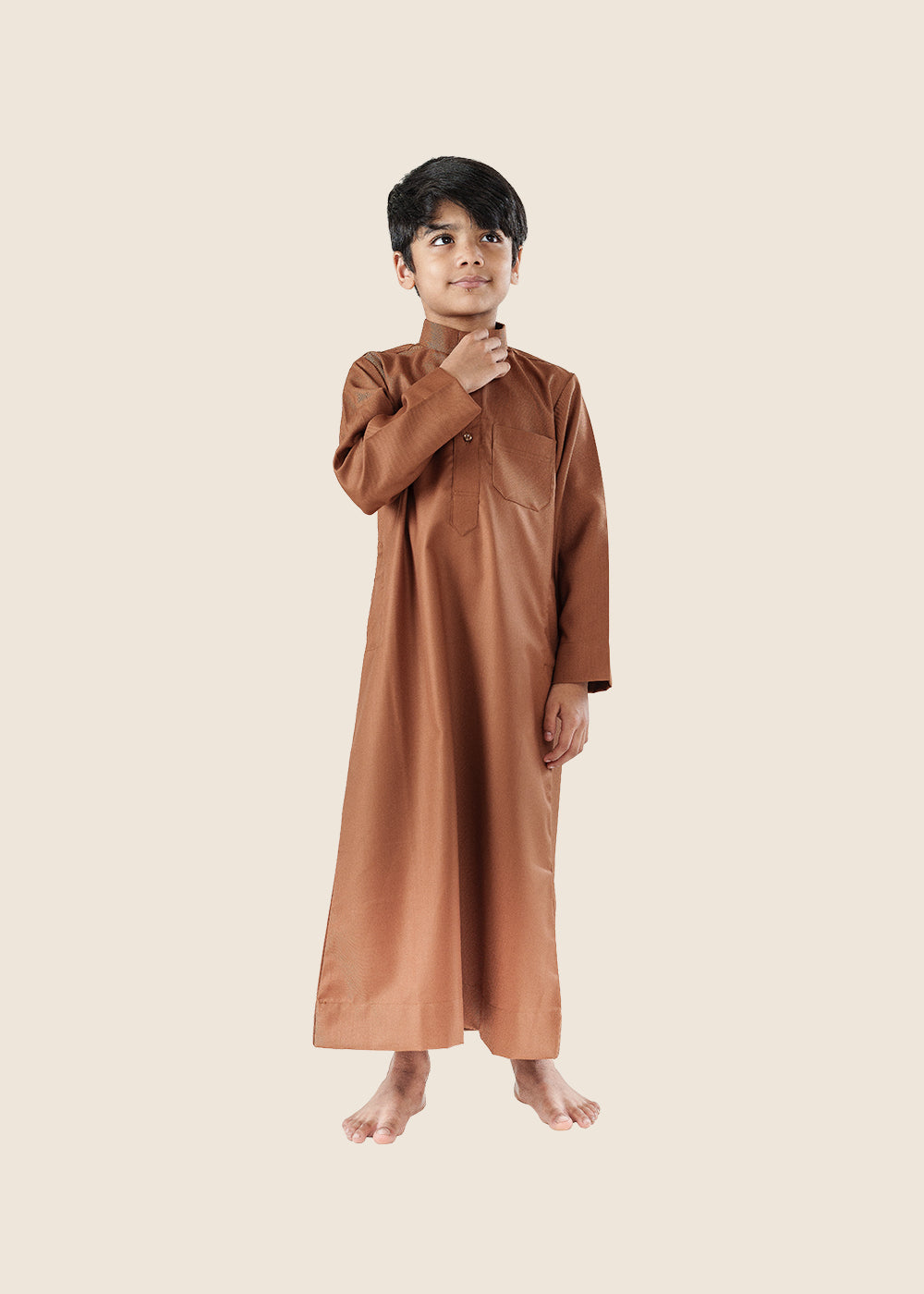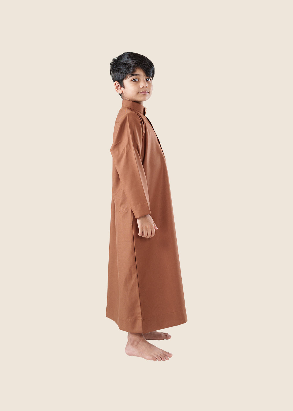 Introducing the Everyday Saudi Toffee Brown Thobe, designed in the classic Saudi style. Made from premium TR cotton, this thobe features a sturdy mandarin collar, two side pockets, and one front pocket, combining practicality with elegance. Perfect for daily wear, the Everyday Saudi Thobe offers both comfort and sophistication.