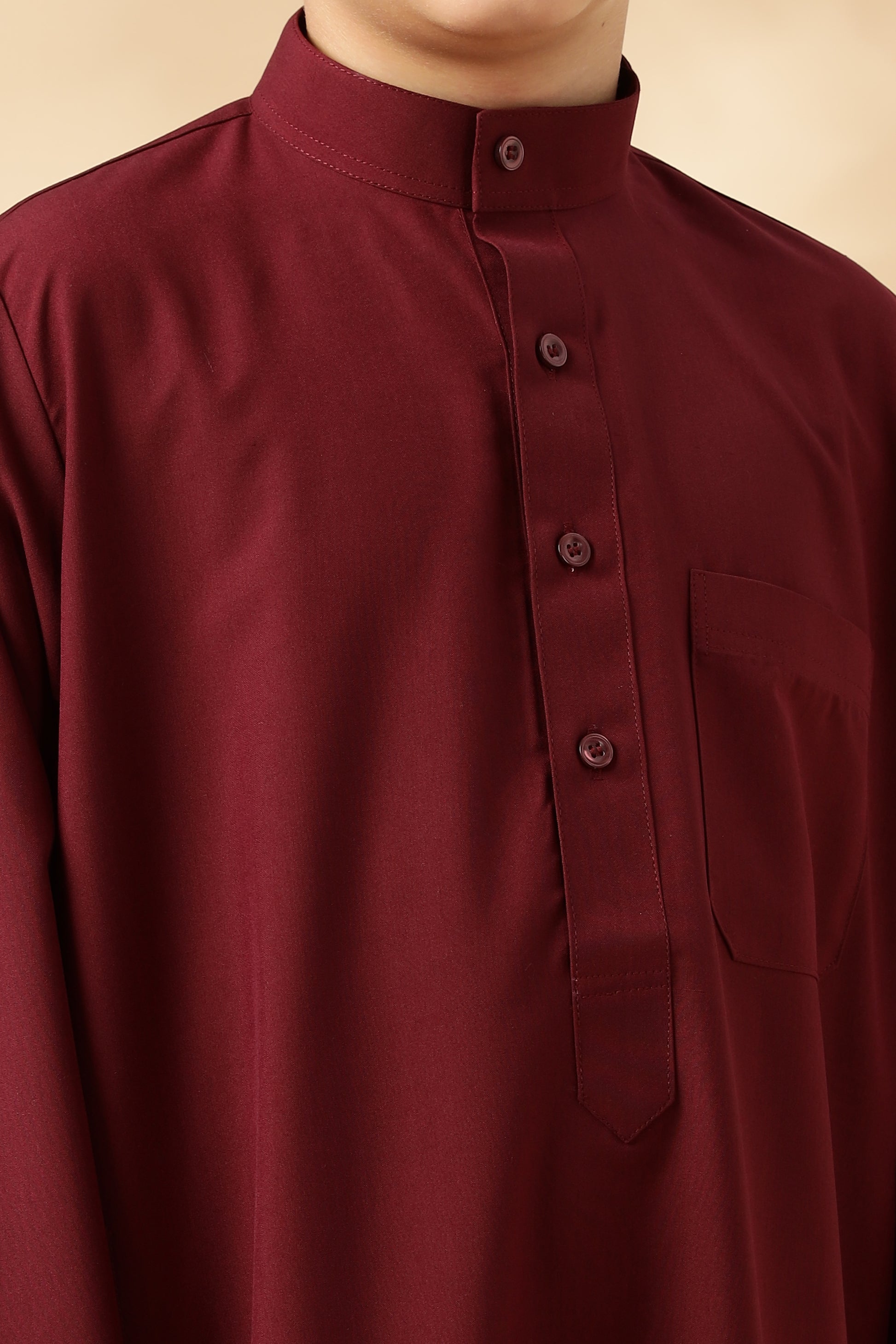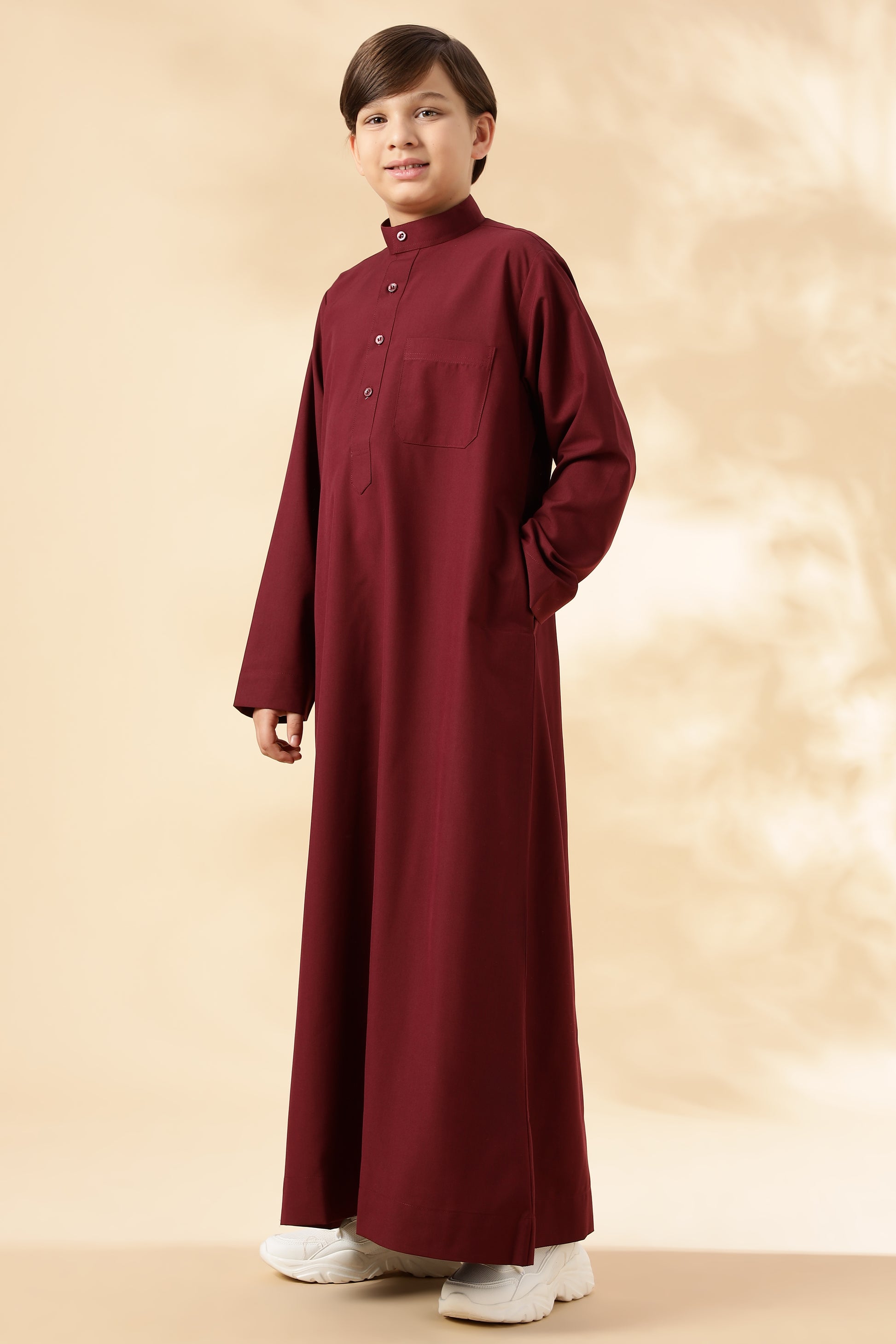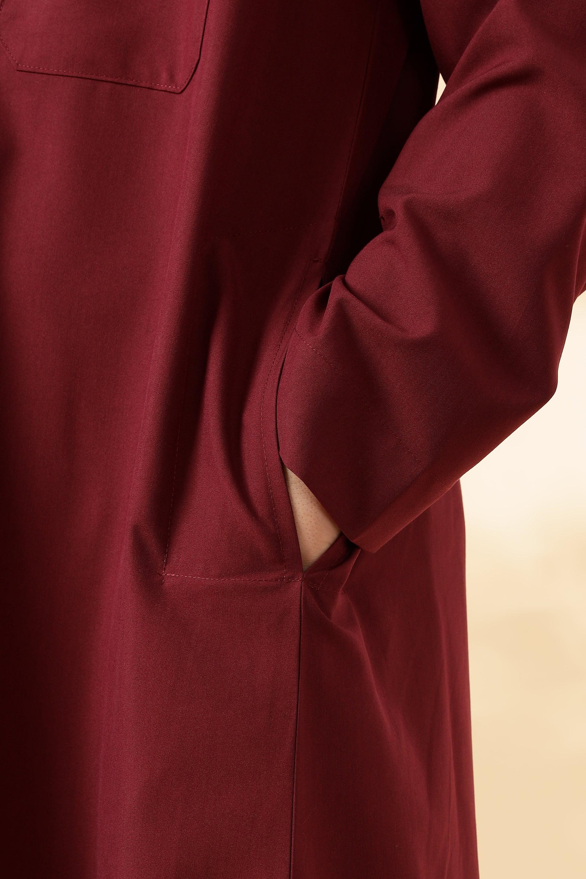 Introducing the Simple Saudi Maroon Thobe, designed in the classic Saudi style. Made from premium KBC Fabric, this thobe features a sturdy mandarin collar, two side pockets, and one front pocket, combining practicality with elegance. Perfect for daily wear, the Simple Saudi Thobe offers both comfort and sophistication.