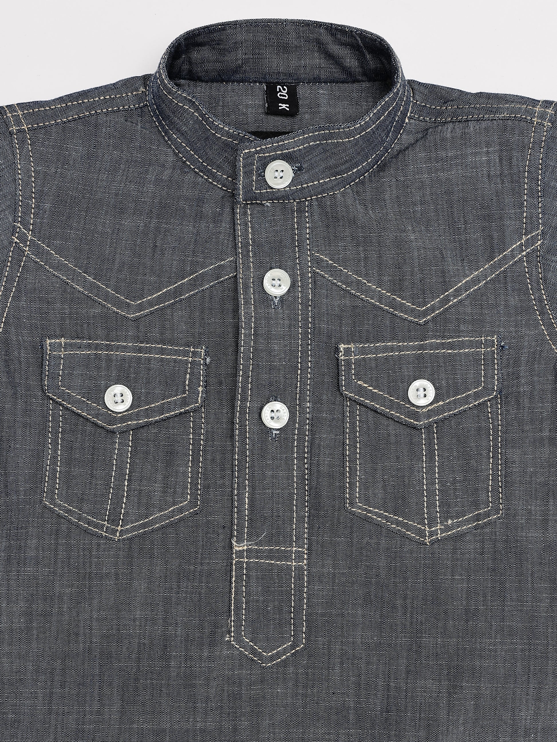 Introducing the Denim Thobe, a modern twist on traditional attire. Crafted from denim fabric, this thobe features dual pockets on the front and side pockets for added functionality. The unique design includes a mandarin collar, adding a touch of sophistication. Elevate your style with the Denim Thobe, perfect for those seeking a contemporary look with a nod to tradition.