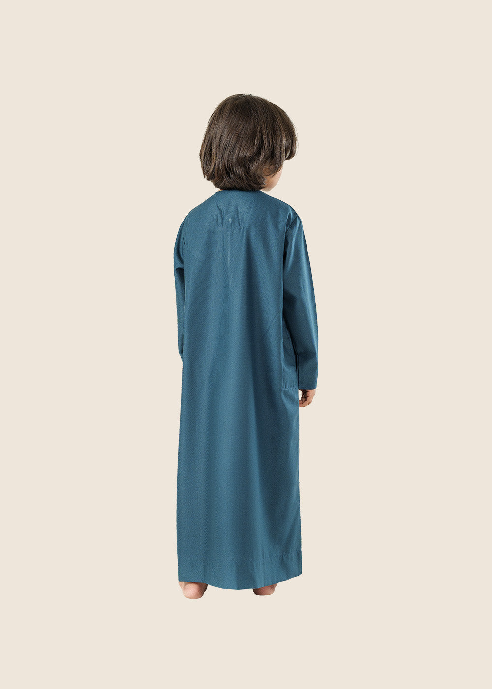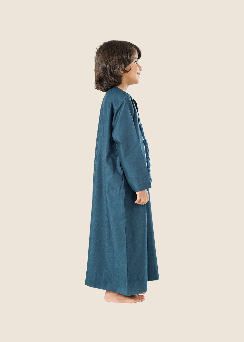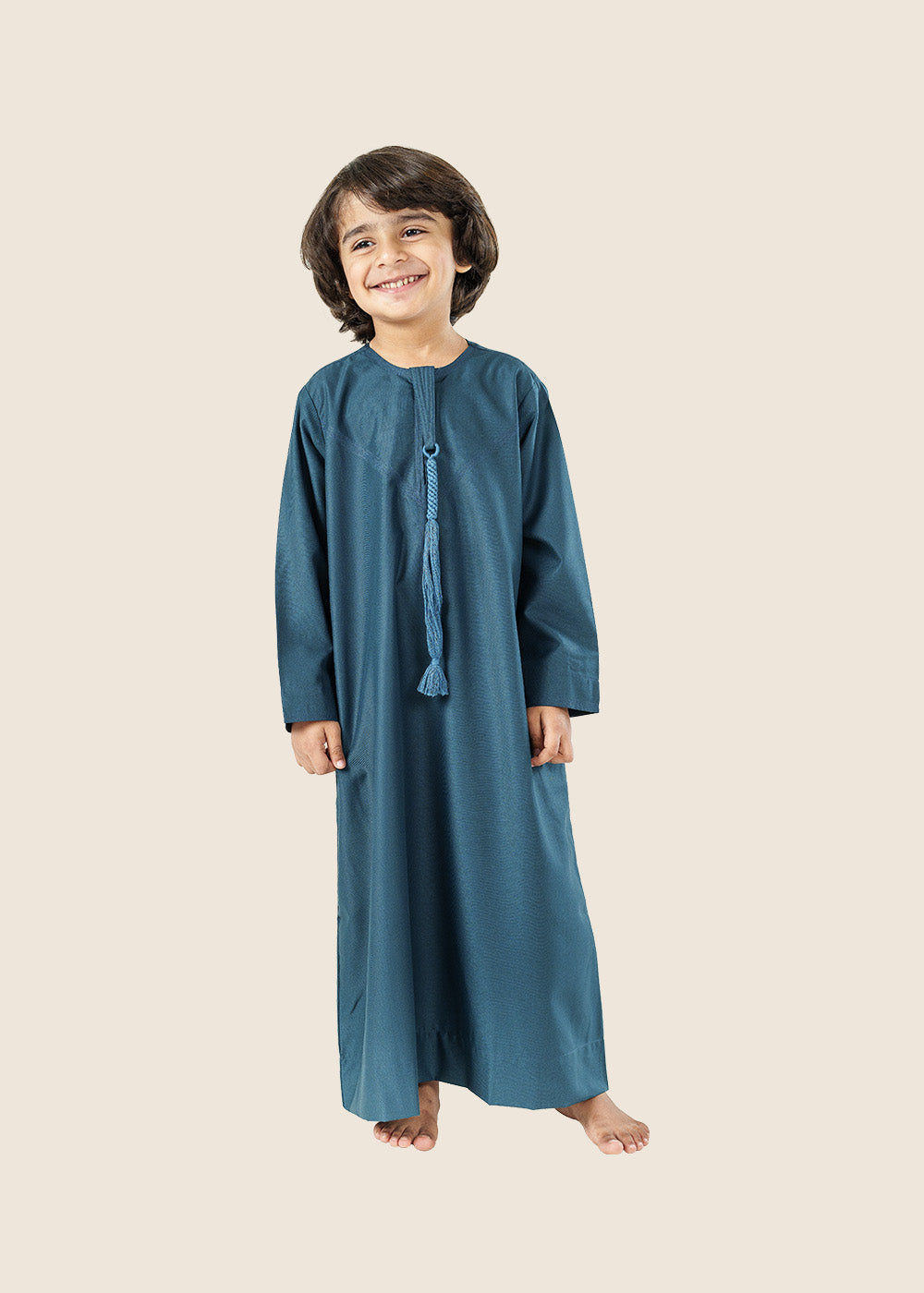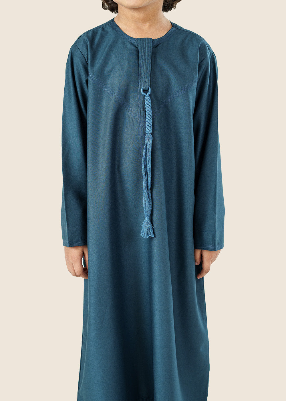 Introducing our Classic Emarati Bluish Green, a symbol of elegance and tradition reimagined for the modern man. Expertly crafted from our premium TR cotton material, this thobe offers unparalleled comfort and durability. Featuring a unique zip front adorned with tasteful tassels, it exudes sophistication and charm. Two side pockets add functionality without compromising style, providing convenient storage for your essentials. Whether for formal gatherings or everyday wear, this timeless garment seamlessly blends traditional craftsmanship with contemporary design, making it a versatile staple for any wardrobe.