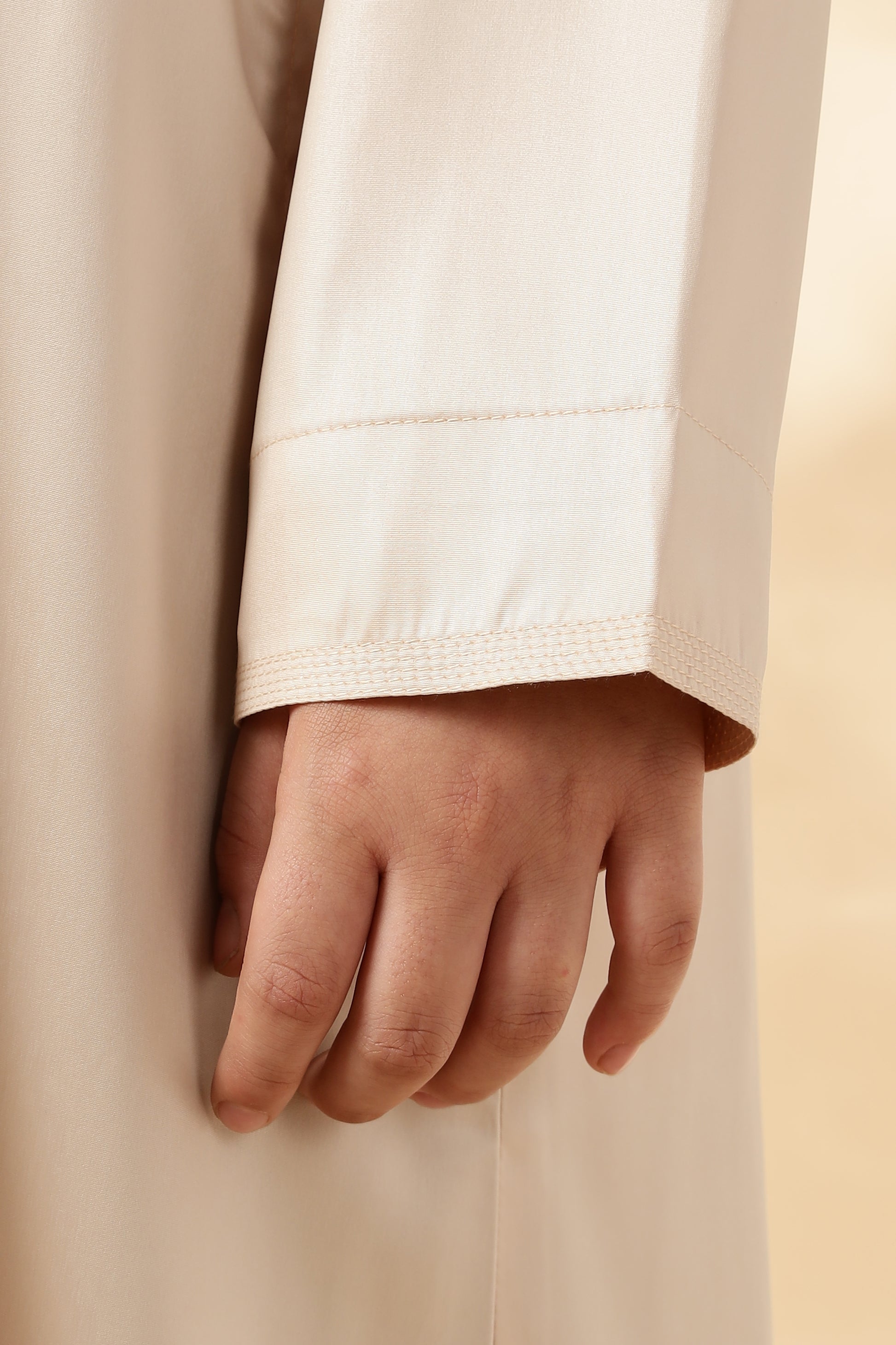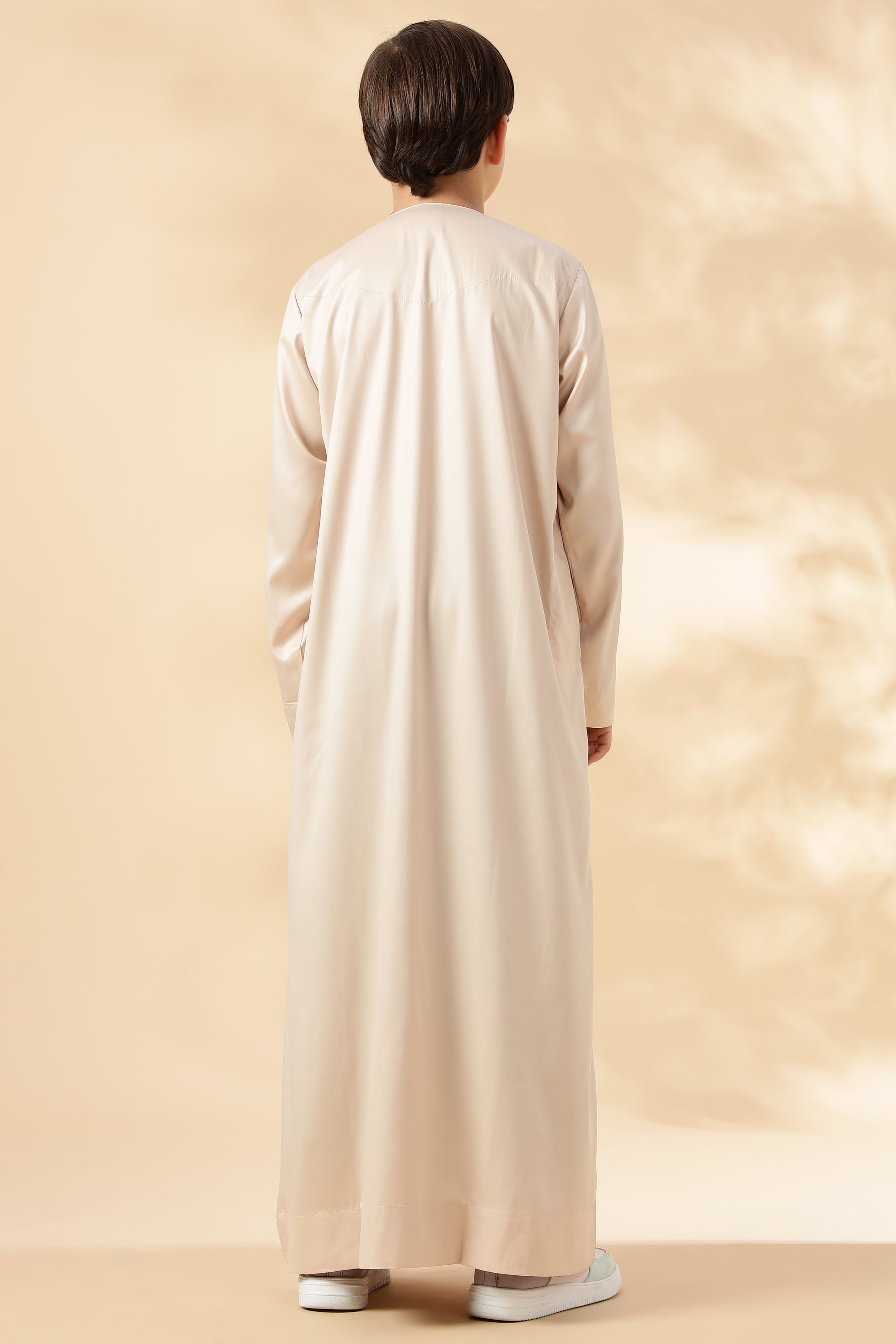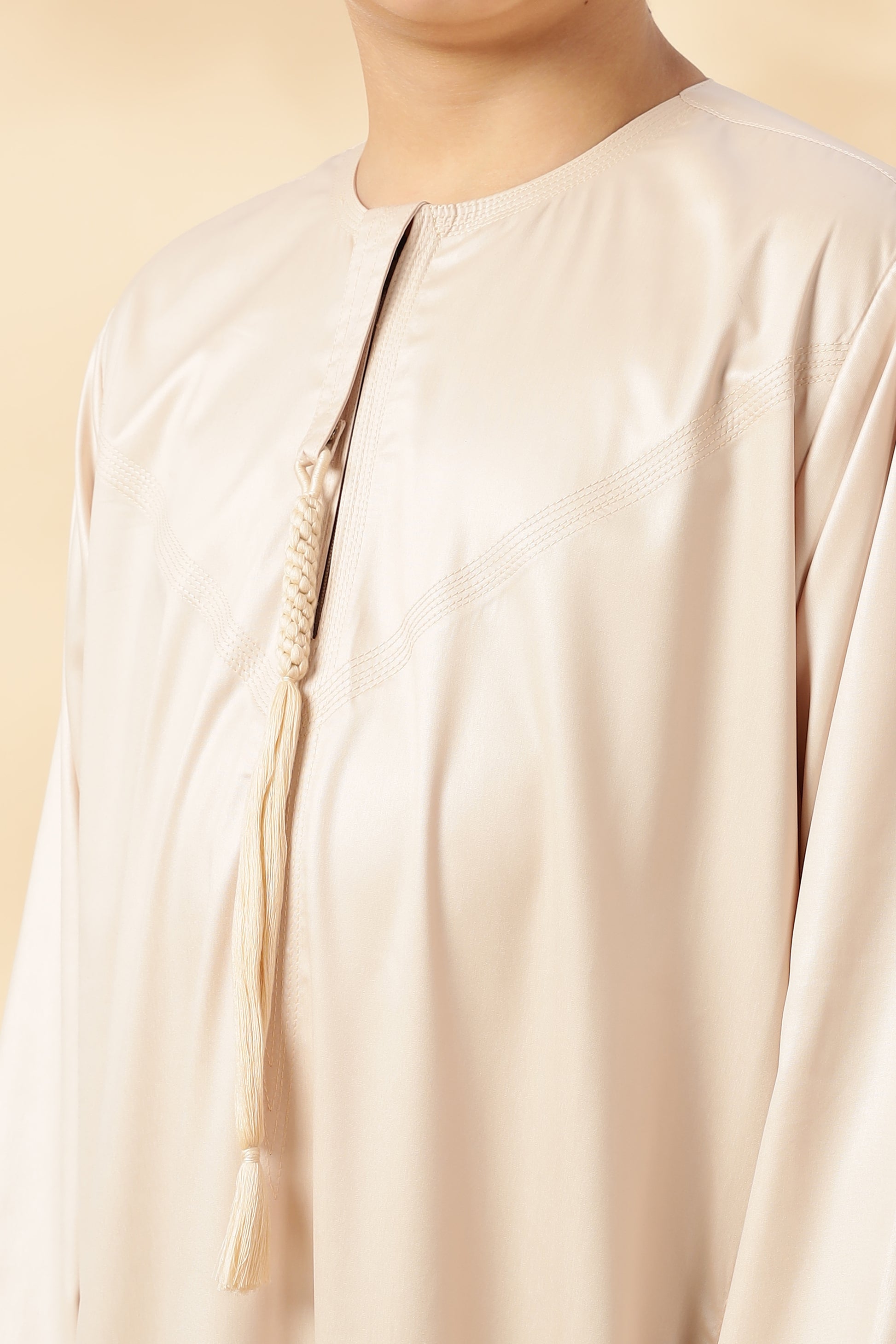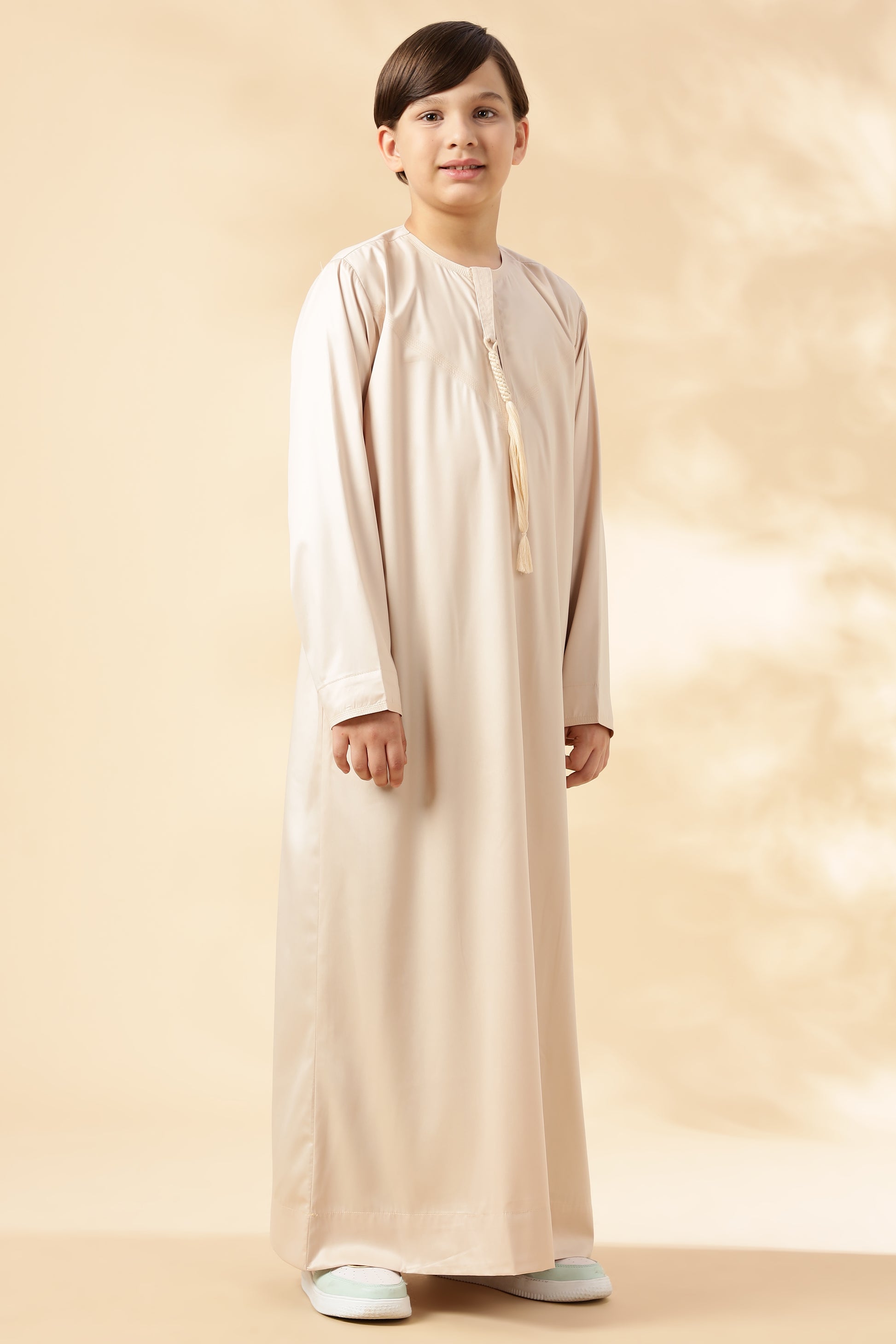 Elevate your style with our Shiny Emarati Cream Thobe, a perfect blend of tradition and modern elegance. Crafted from premium, silky-smooth fabric, this thobe radiates a luxurious shine that sets you apart. Designed with meticulous attention to detail, it features elegant front tassels, practical side pockets, and a hidden zip for a seamless, refined look. Whether for special occasions or everyday sophistication, this thobe delivers unmatched comfort and timeless Emarati charm.