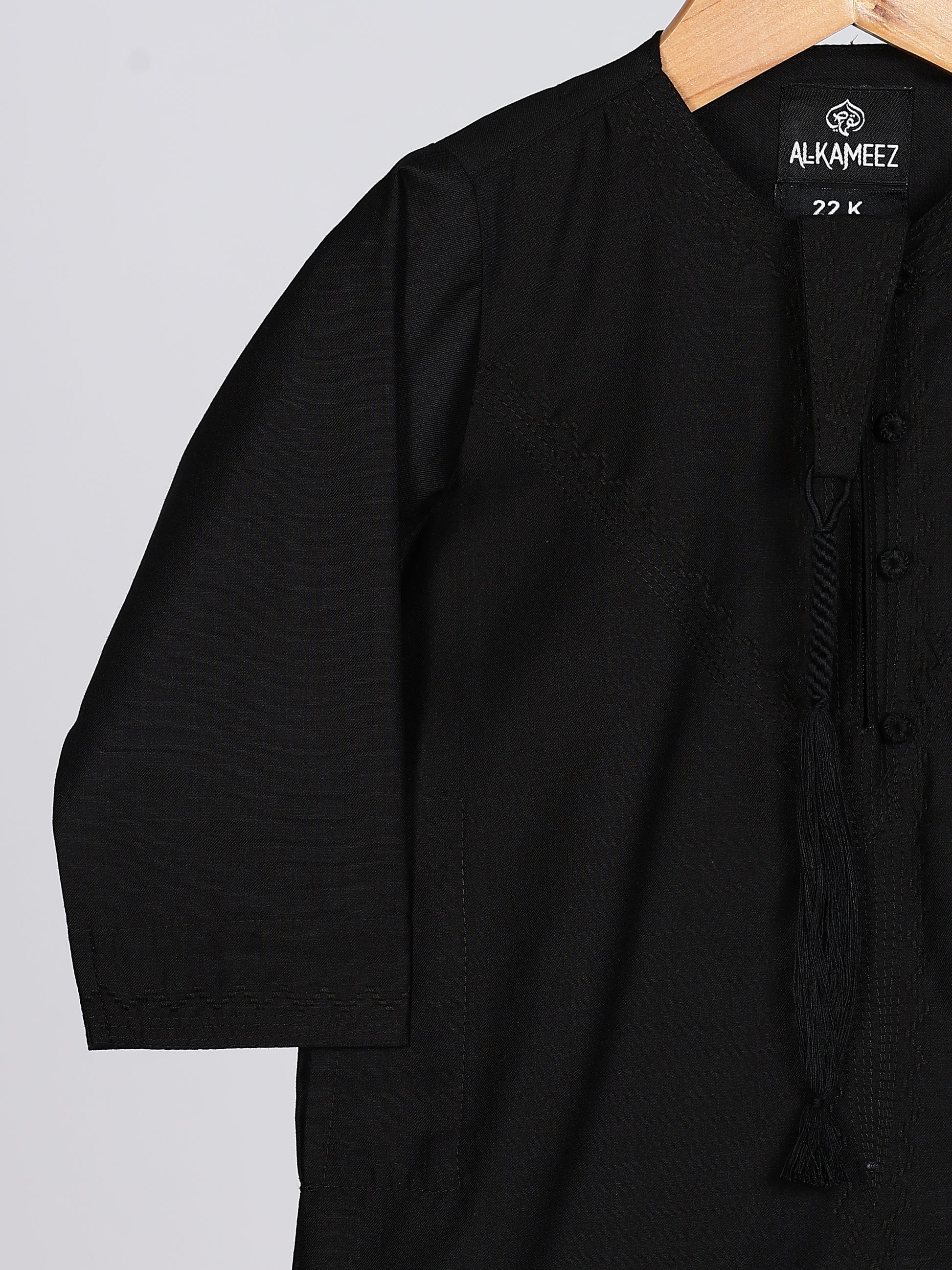 Step into refined elegance with the Noir Emarati Black Thobe, a seamless fusion of tradition and contemporary sophistication. Crafted from premium fabric with a smooth matte finish, it embodies quiet luxury and effortless grace. The deep black hue adds a timeless allure, while refined details—front tassels, discreet side pockets, and a concealed zip—create a sleek, polished look. Whether worn for formal gatherings or special occasions, the Emarati Noir delivers unparalleled comfort and distinguished Emirati charm.