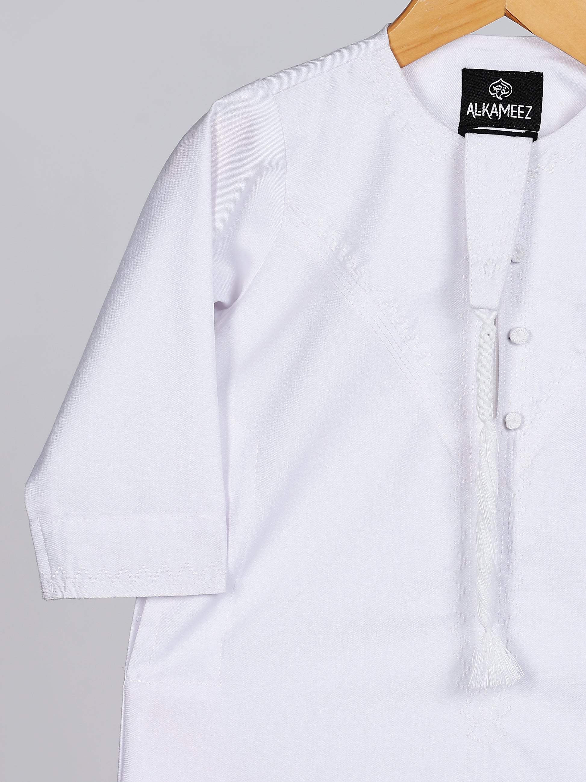 Step into refined elegance with the Noir Emarati White Thobe, a seamless fusion of tradition and contemporary sophistication. Crafted from premium fabric with a smooth matte finish, it embodies quiet luxury and effortless grace. The deep black hue adds a timeless allure, while refined details—front tassels, discreet side pockets, and a concealed zip—create a sleek, polished look. Whether worn for formal gatherings or special occasions, the Emarati Noir delivers unparalleled comfort and distinguished Emirati charm.