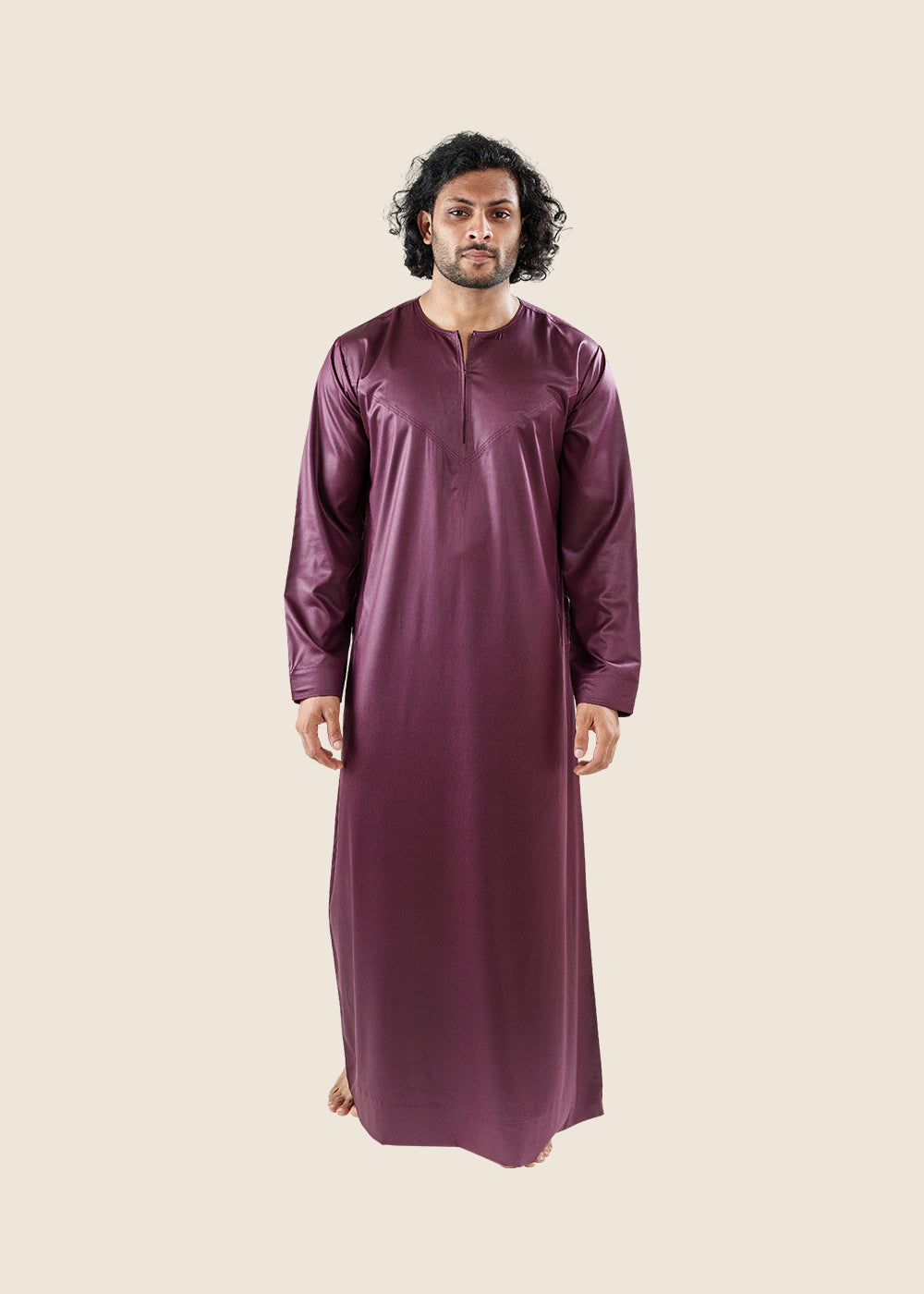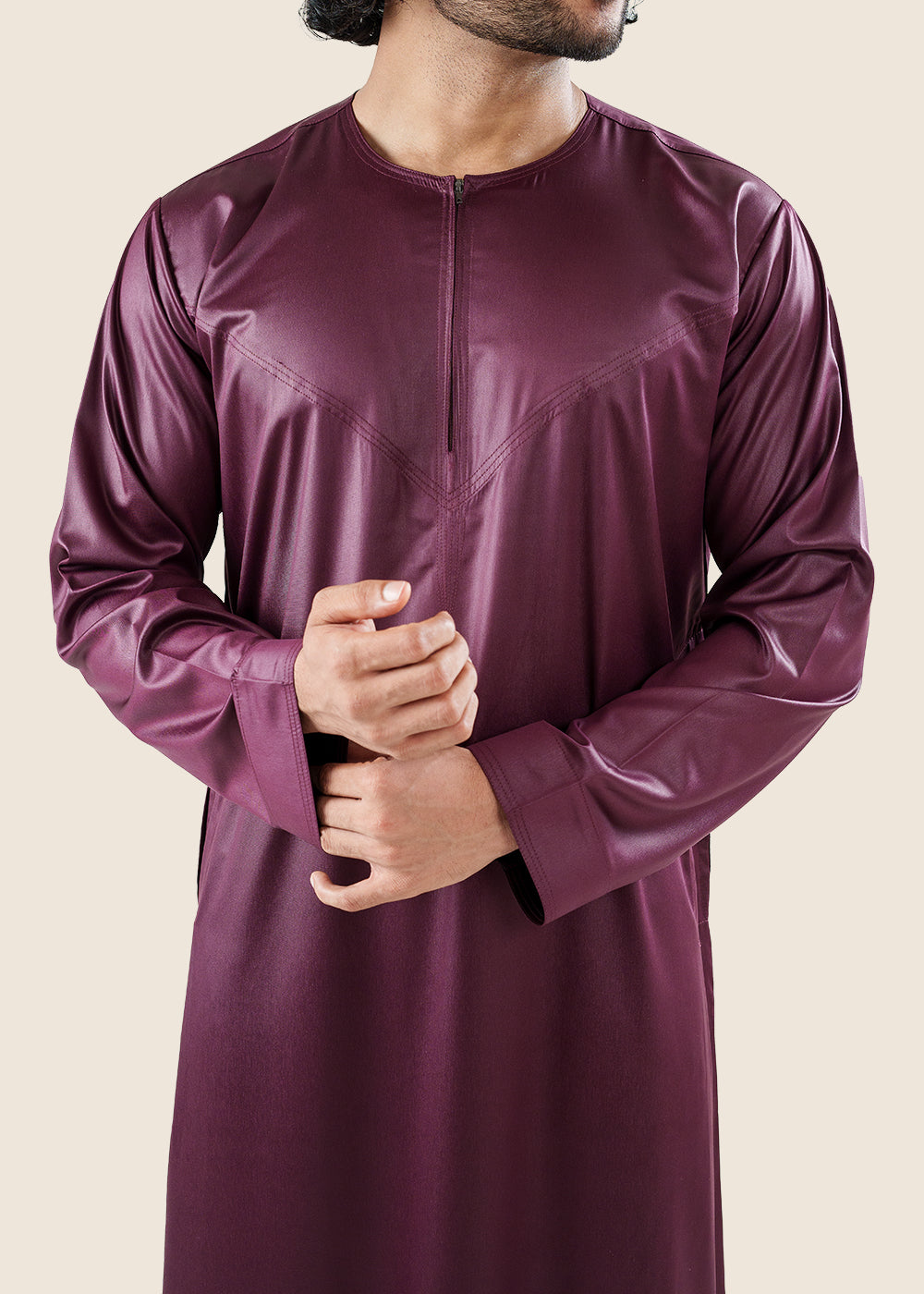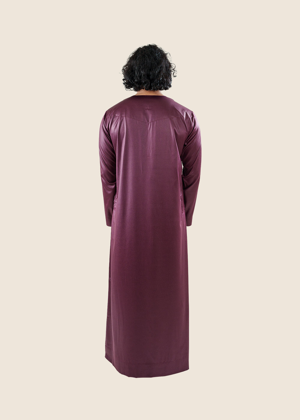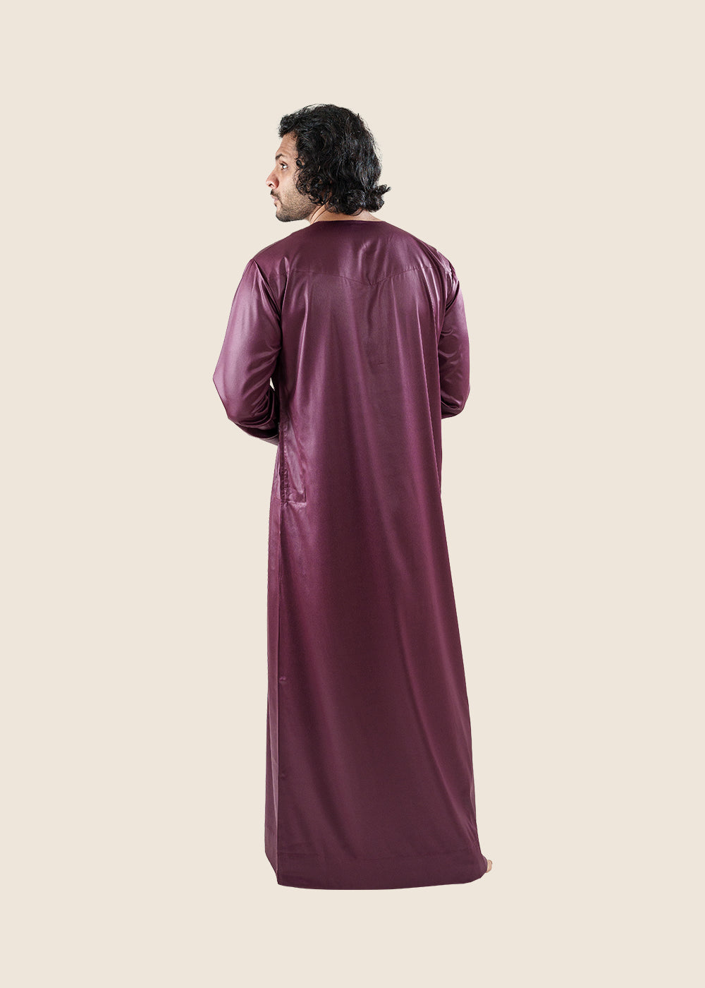 Experience the luxurious charm of the Dazzling Omani Maroon Thobe. Designed in the elegant Omani style, this thobe is crafted from silky fabric, offering a smooth and comfortable feel. It features a convenient front zip and two side pockets for added practicality. Elevate your wardrobe with the timeless sophistication of the Dazzling Omani Thobe.