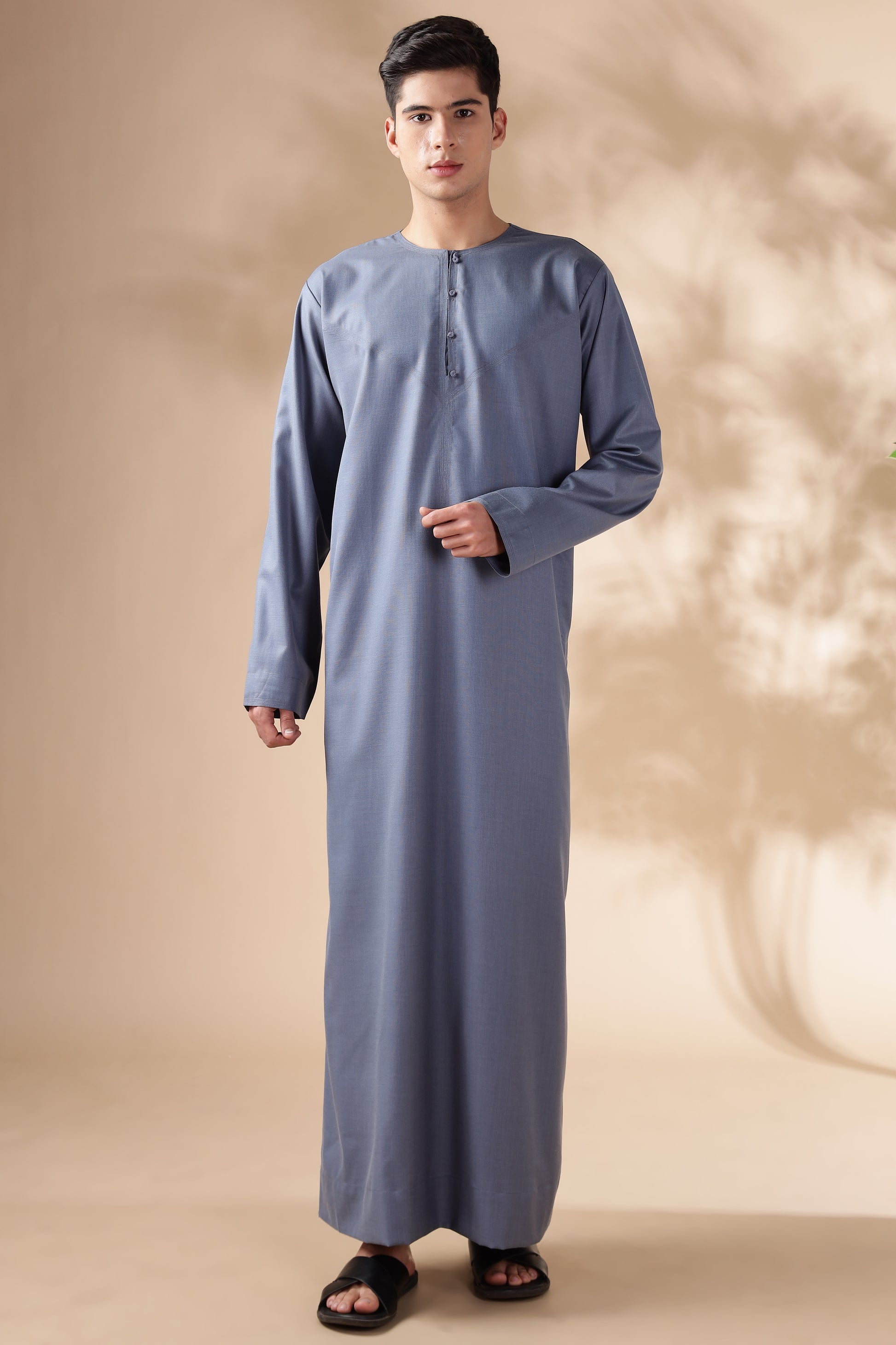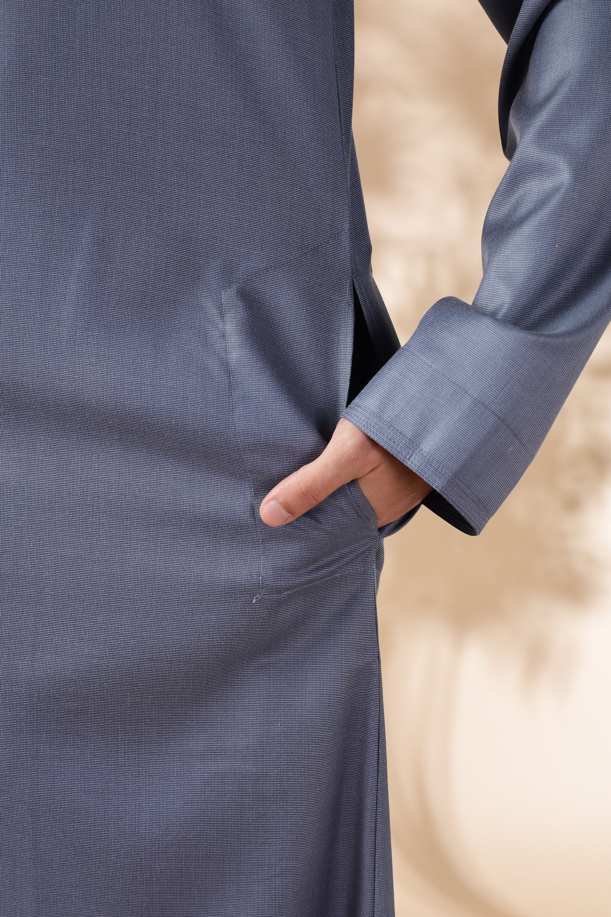 The Majestic Omani Pigeon Blue Thobe embodies understated elegance, crafted from soft cotton for a lightweight and comfortable feel. Designed with simplicity and sophistication in mind, this thobe features discreet side pockets for practicality, seamlessly blending function with style. The addition of classic cotton buttons enhances the thobe’s minimalistic charm while maintaining its traditional Omani appeal.