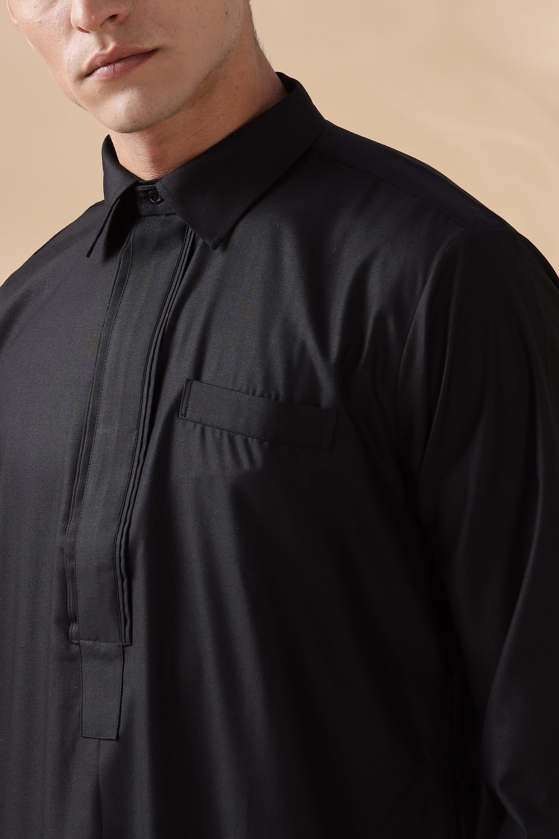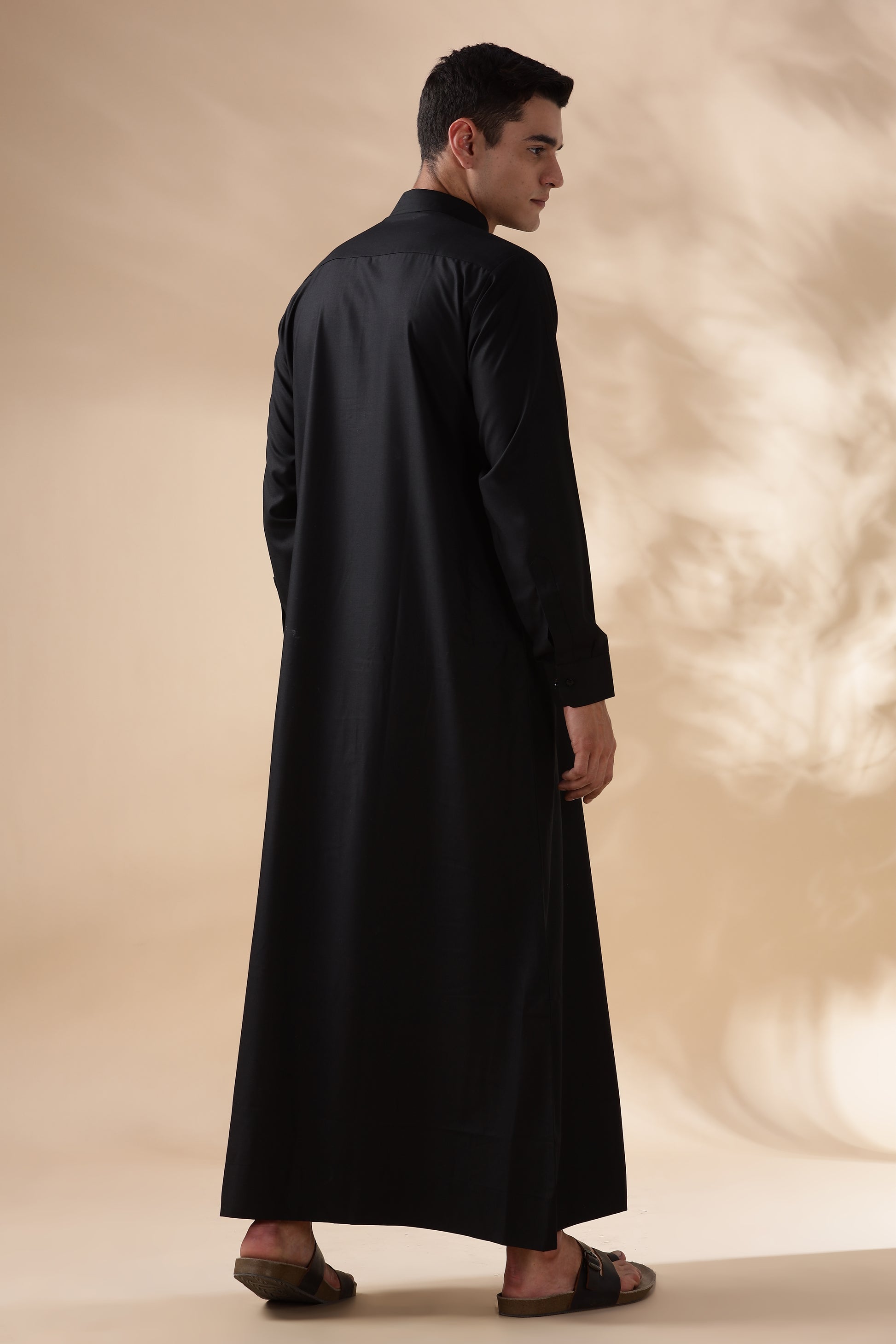 Experience elegance and sophistication with our Prime Bahraini Black Thobe, a seamless blend of tradition and modern refinement. Crafted for comfort and style, this thobe features a soft shirt collar for a polished look, complemented by cuff buttons that add a touch of distinction. The concealed front buttons enhance its sleek and minimal aesthetic, while the front pocket and side pockets provide practicality without compromising on elegance. Designed for the modern gentleman, this premium thobe is perfect for any occasion, whether formal gatherings or everyday wear.