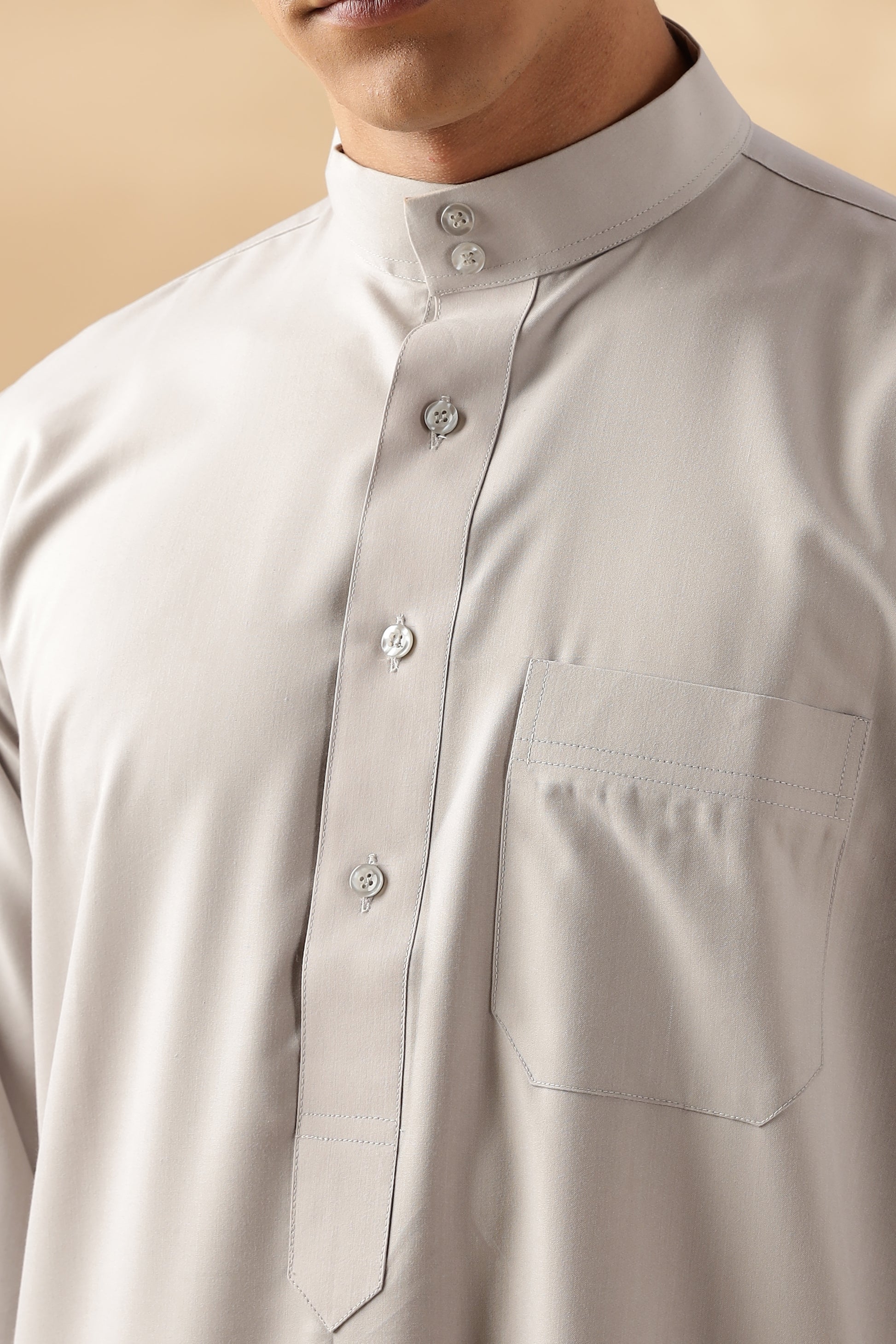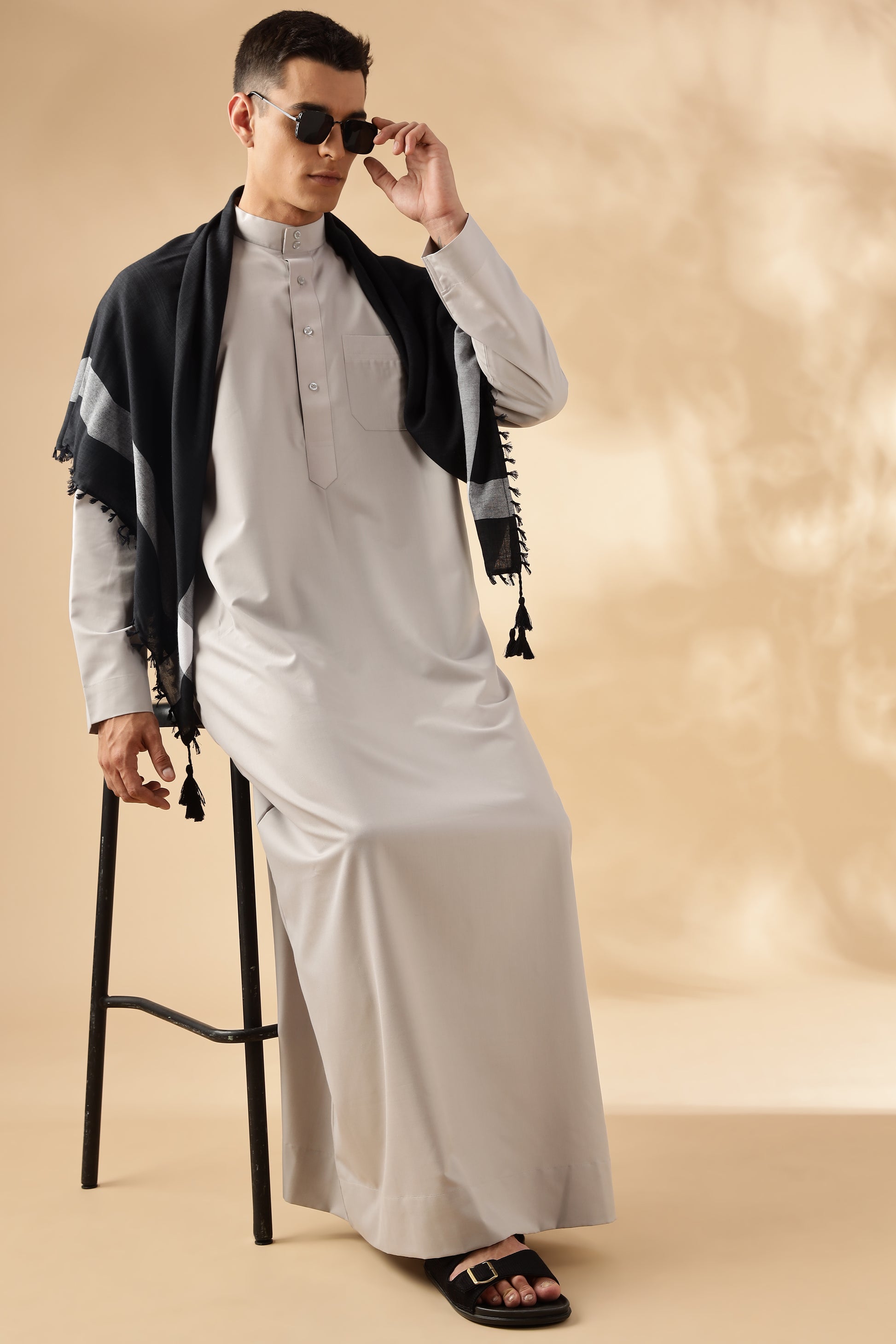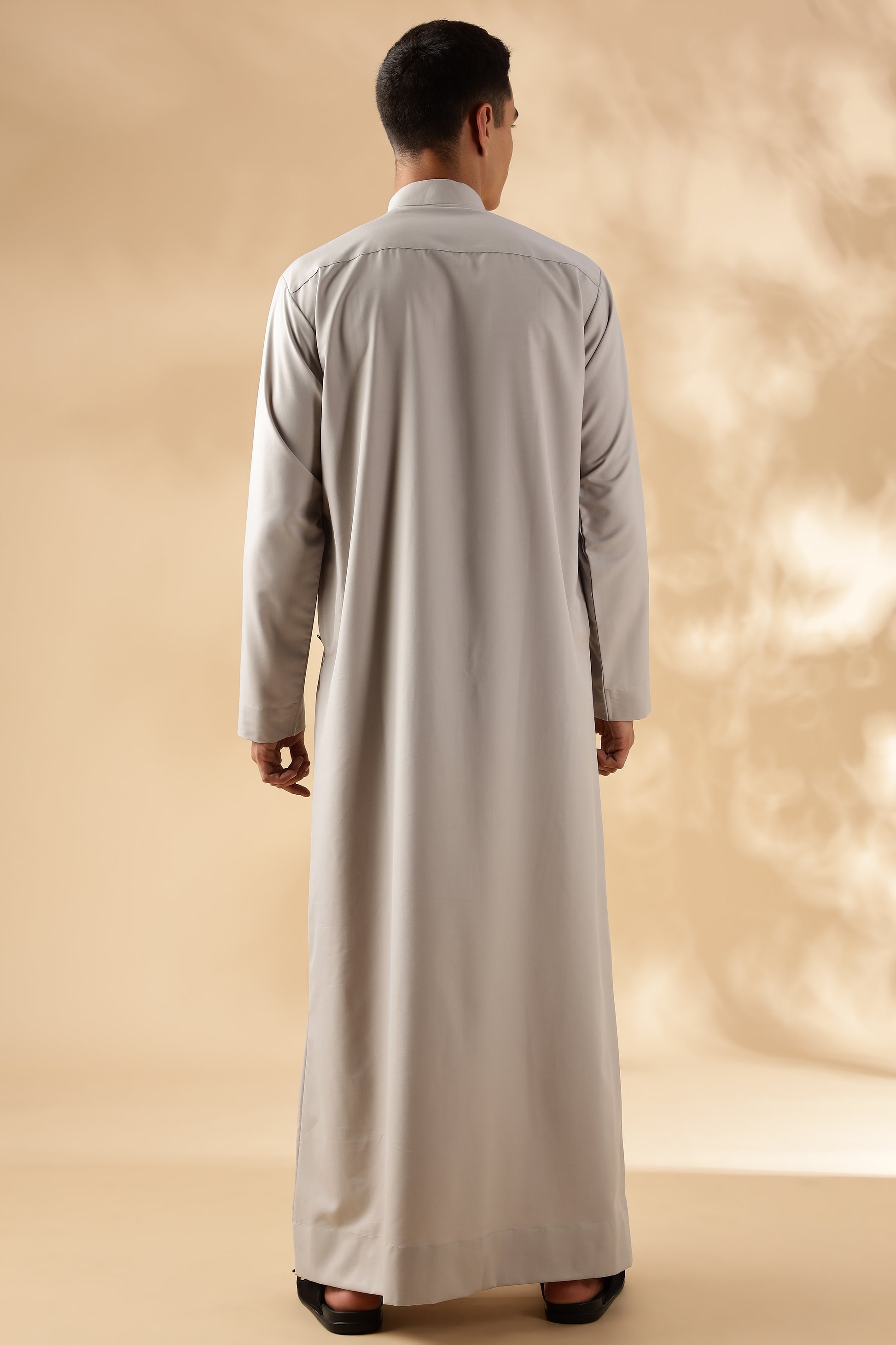 Introducing the Simple Saudi Slate Grey Thobe, designed in the classic Saudi style. Made from premium KBC Fabric, this thobe features a sturdy mandarin collar, two side pockets, and one front pocket, combining practicality with elegance. Perfect for daily wear, the Simple Saudi Thobe offers both comfort and sophistication.