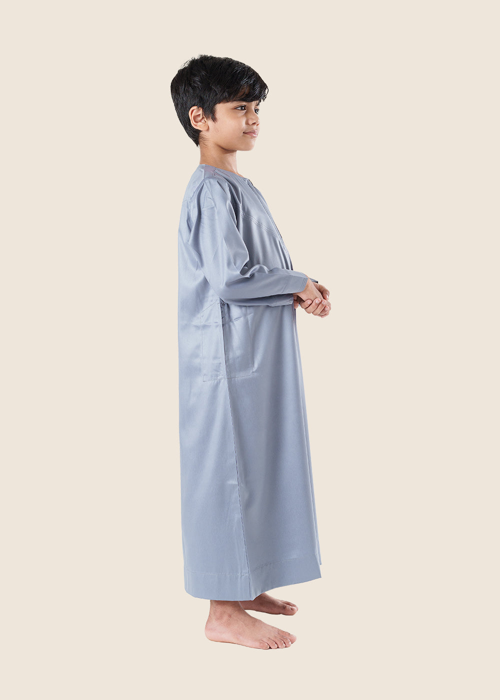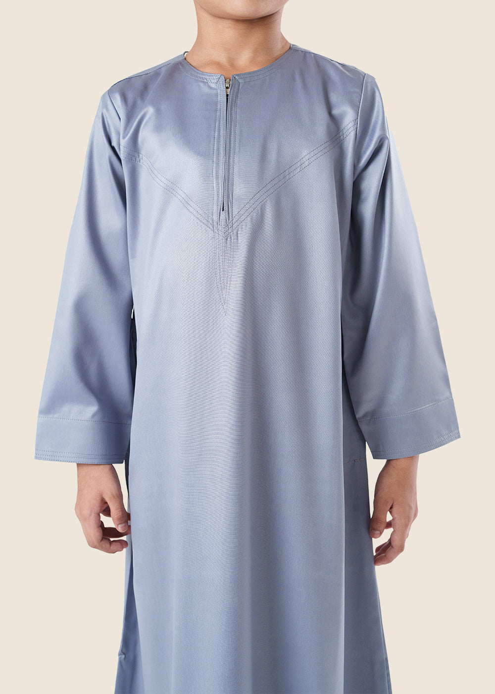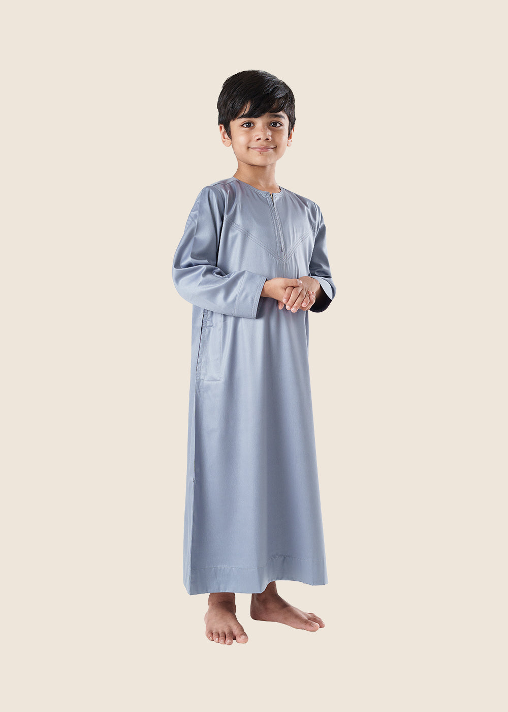 Experience the luxurious charm of the Dazzling Omani Light Grey Thobe. Designed in the elegant Omani style, this thobe is crafted from silky fabric, offering a smooth and comfortable feel. It features a convenient front zip and two side pockets for added practicality. Elevate your wardrobe with the timeless sophistication of the Dazzling Omani Thobe.