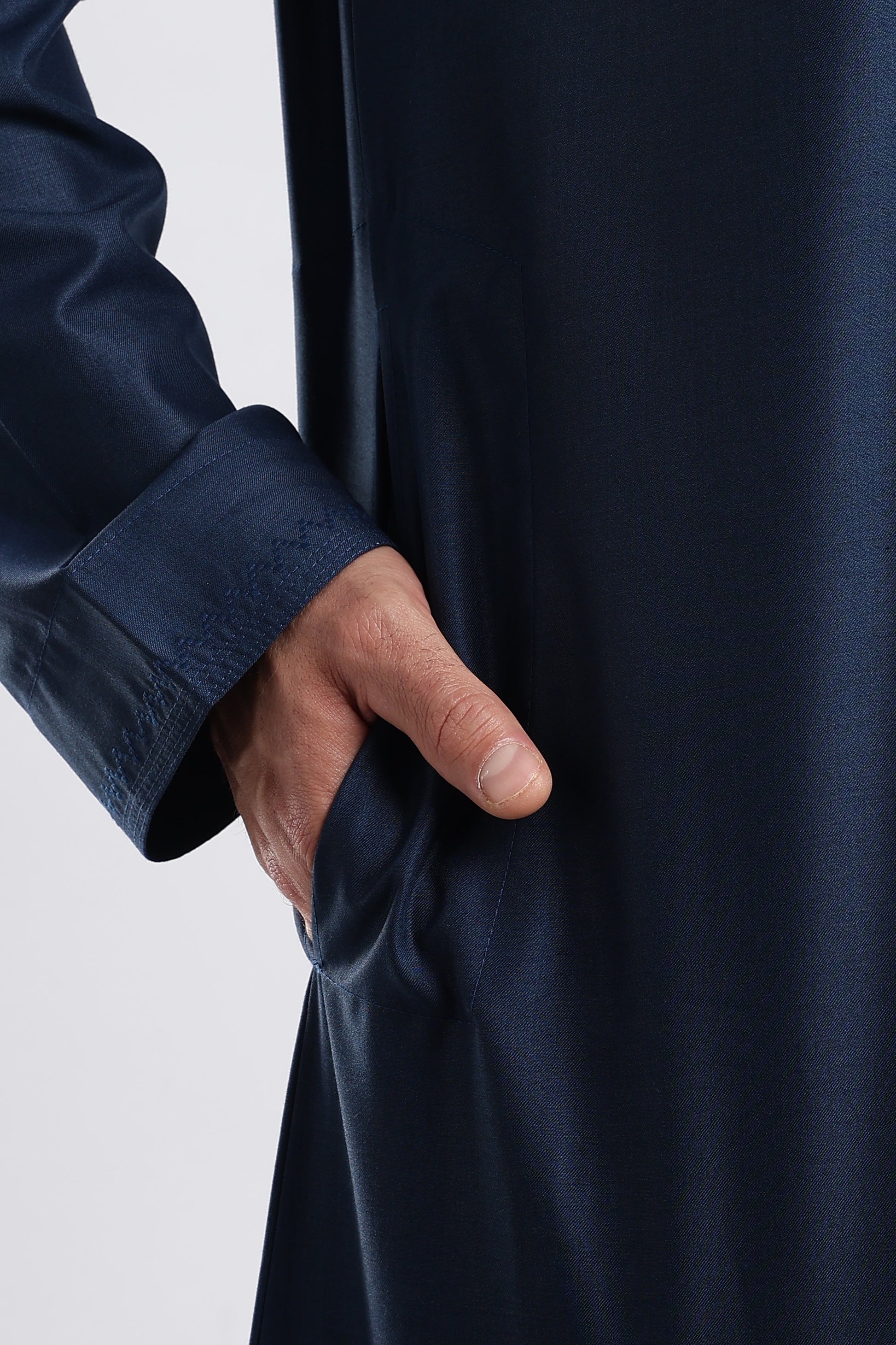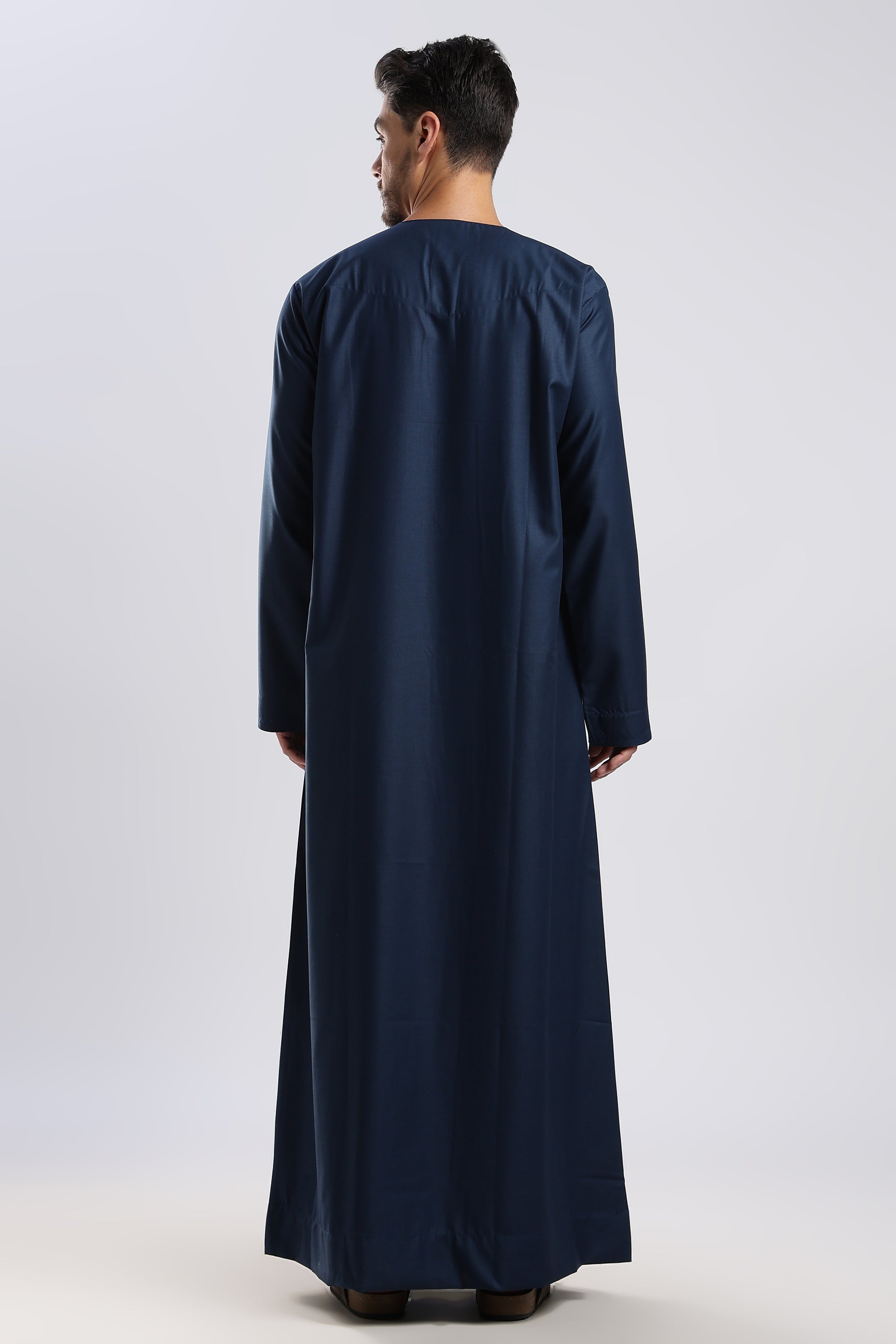 Step into refined elegance with the Noir Emarati Taupe Blue Thobe, a seamless fusion of tradition and contemporary sophistication. Crafted from premium fabric with a smooth matte finish, it embodies quiet luxury and effortless grace. The deep black hue adds a timeless allure, while refined details—front tassels, discreet side pockets, and a concealed zip, create a sleek, polished look. Whether worn for formal gatherings or special occasions, the Emarati Noir delivers unparalleled comfort and distinguished Emirati charm.