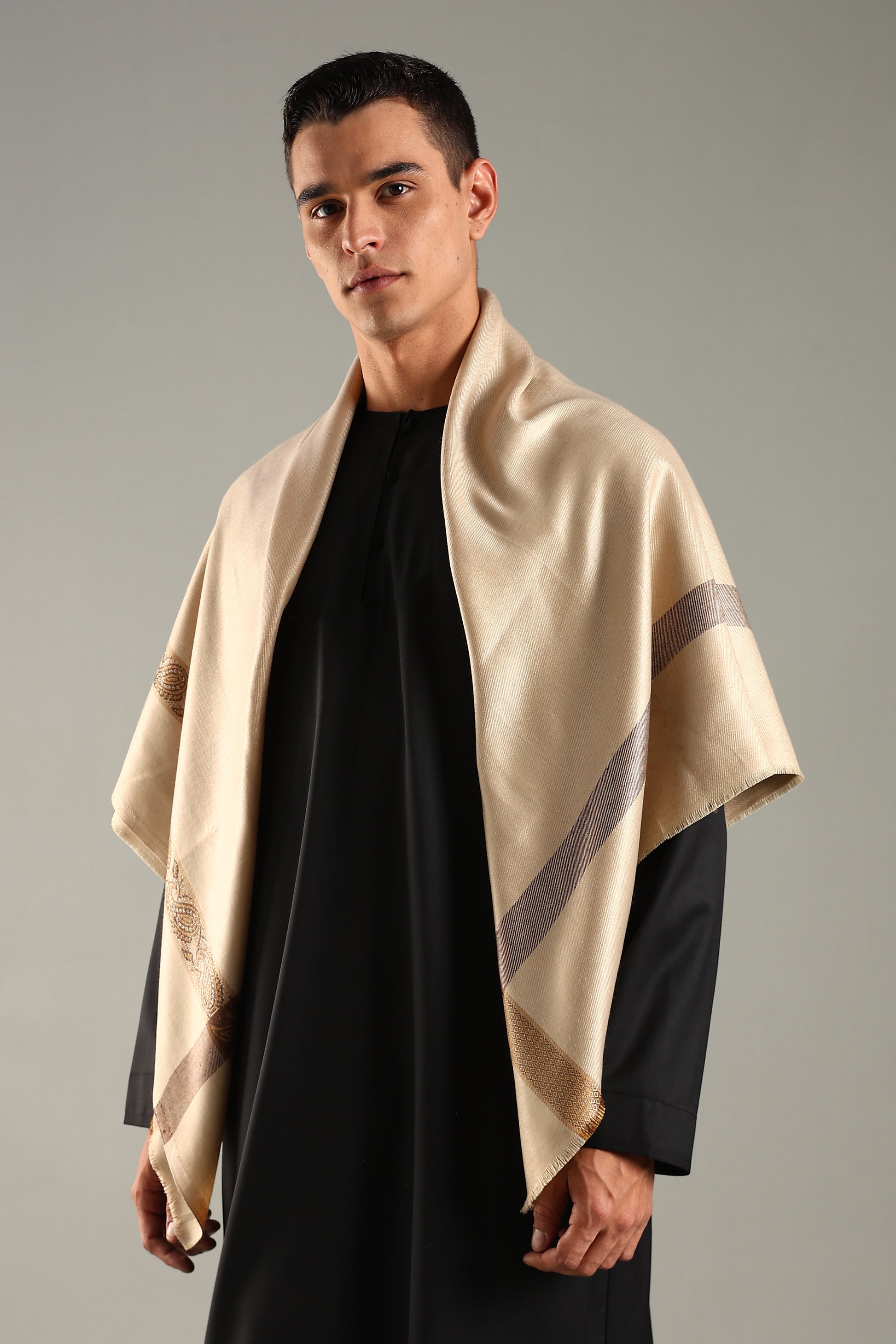 An epitome of timeless Kashmiri craftsmanship — the Cream Tilla Kashmiri Shemagh is designed to embody understated elegance. The soft cream hue brings a calm, royal tone, enhanced by delicate Tilla embroidery that runs gracefully across the borders. Woven with care and finished with a smooth, luxurious texture, this shawl adds a refined warmth to both traditional and modern attire.
