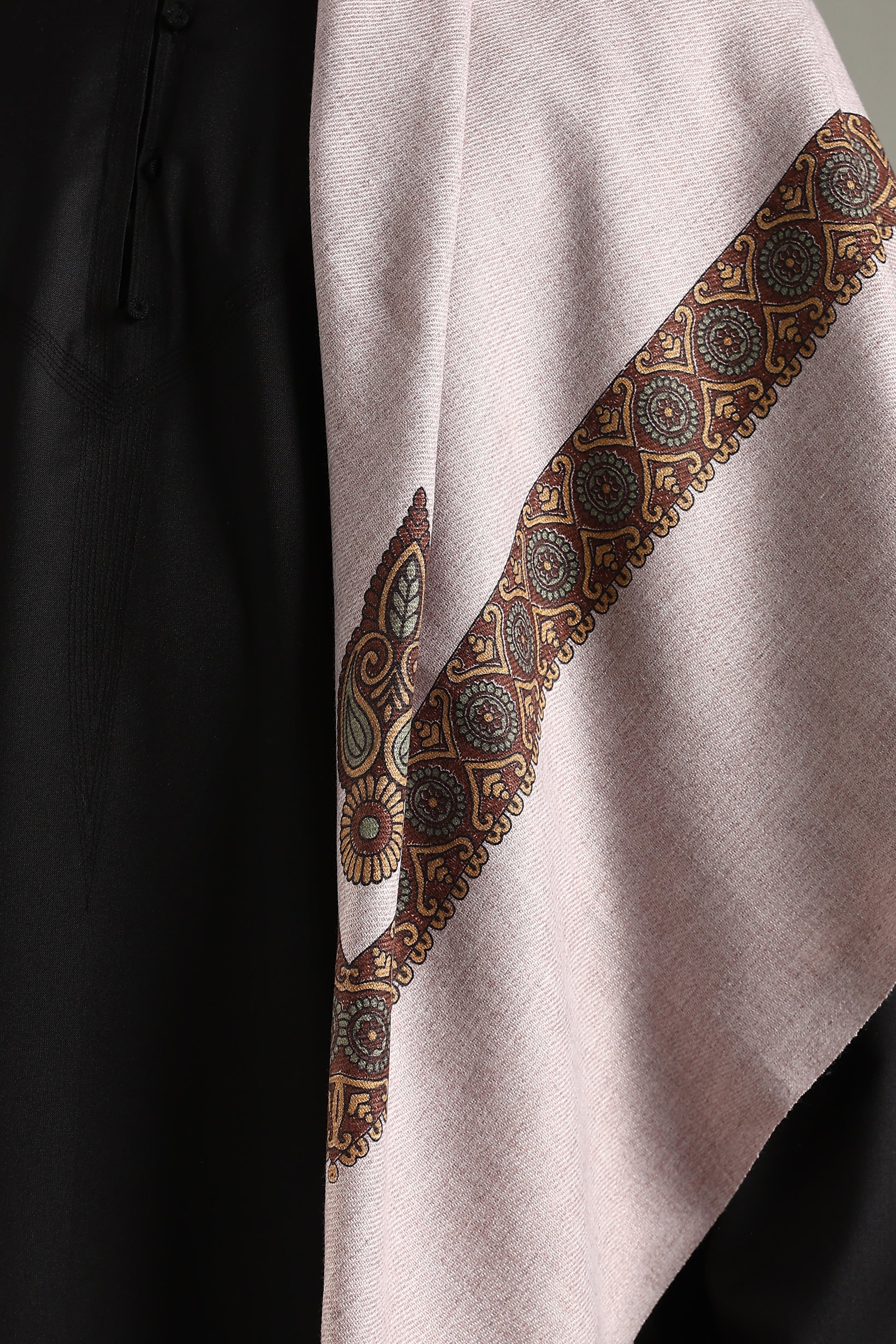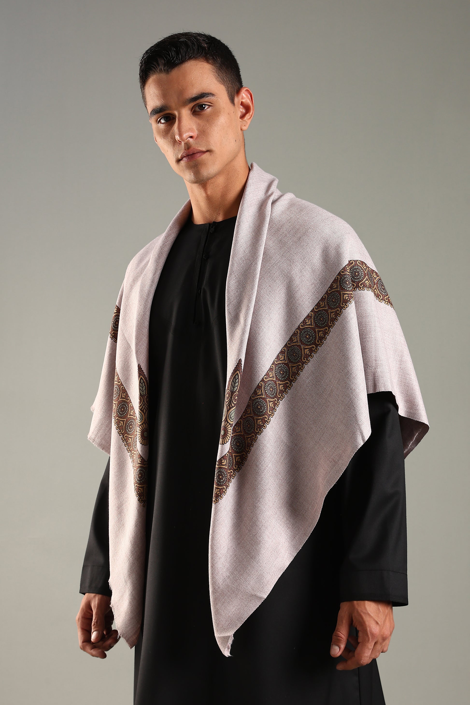 A statement of timeless elegance — the Lavender Embossed Kashmir Shemagh combines classic Kashmiri artistry with modern sophistication. The warm copper tone radiates understated luxury, while the intricate embossed border design adds depth and heritage-inspired charm. Perfect for refined occasions or effortless everyday grace, this shawl drapes beautifully with a soft, smooth fall.