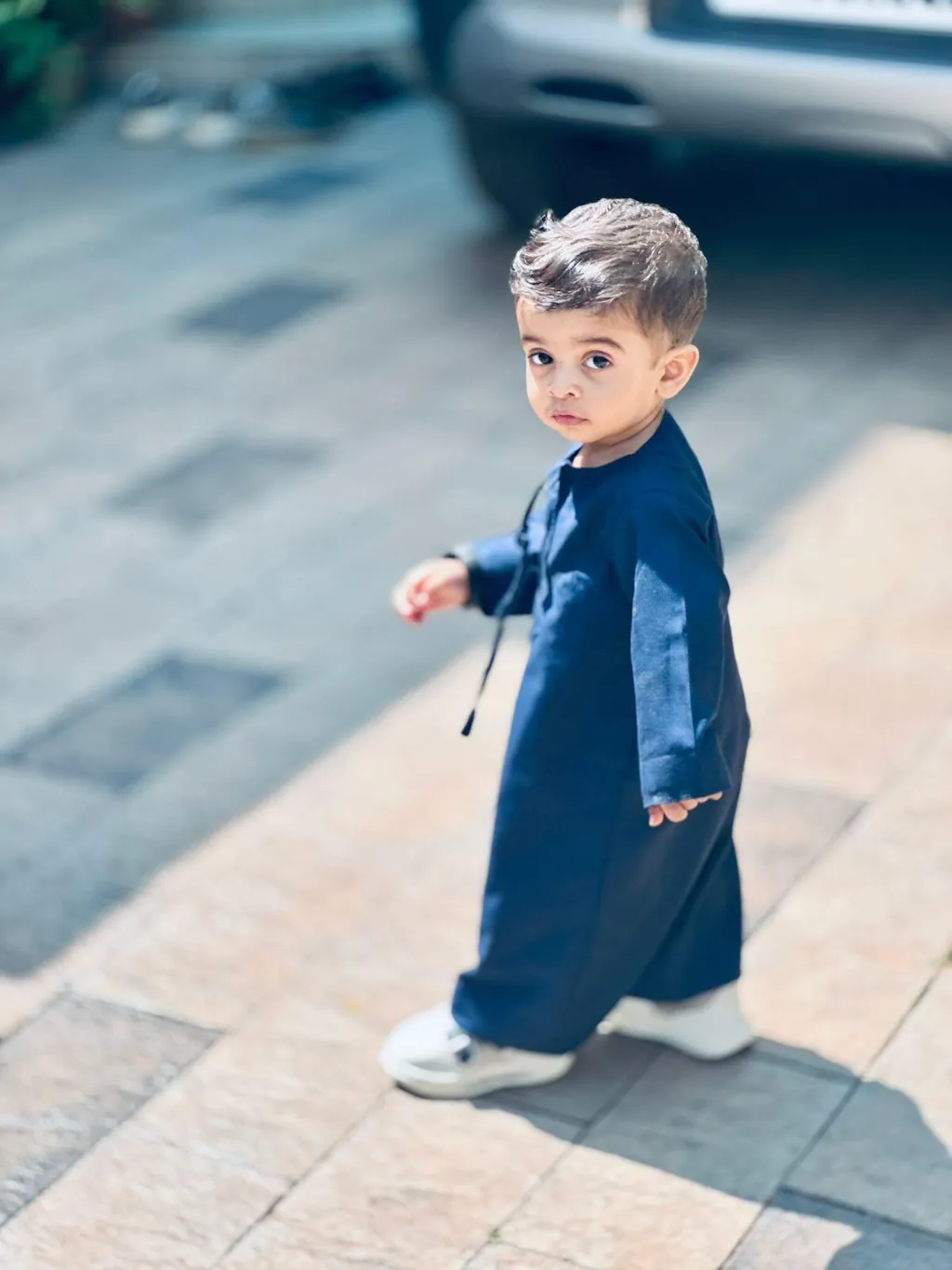 Introducing our Classic Emarati Navy Blue Thobe, a symbol of elegance and tradition reimagined for the modern man. Expertly crafted from our premium TR cotton material, this thobe offers unparalleled comfort and durability. Featuring a unique zip front adorned with tasteful tassels, it exudes sophistication and charm. Two side pockets add functionality without compromising style, providing convenient storage for your essentials. Whether for formal gatherings or everyday wear, this timeless garment seamlessly blends traditional craftsmanship with contemporary design, making it a versatile staple for any wardrobe.