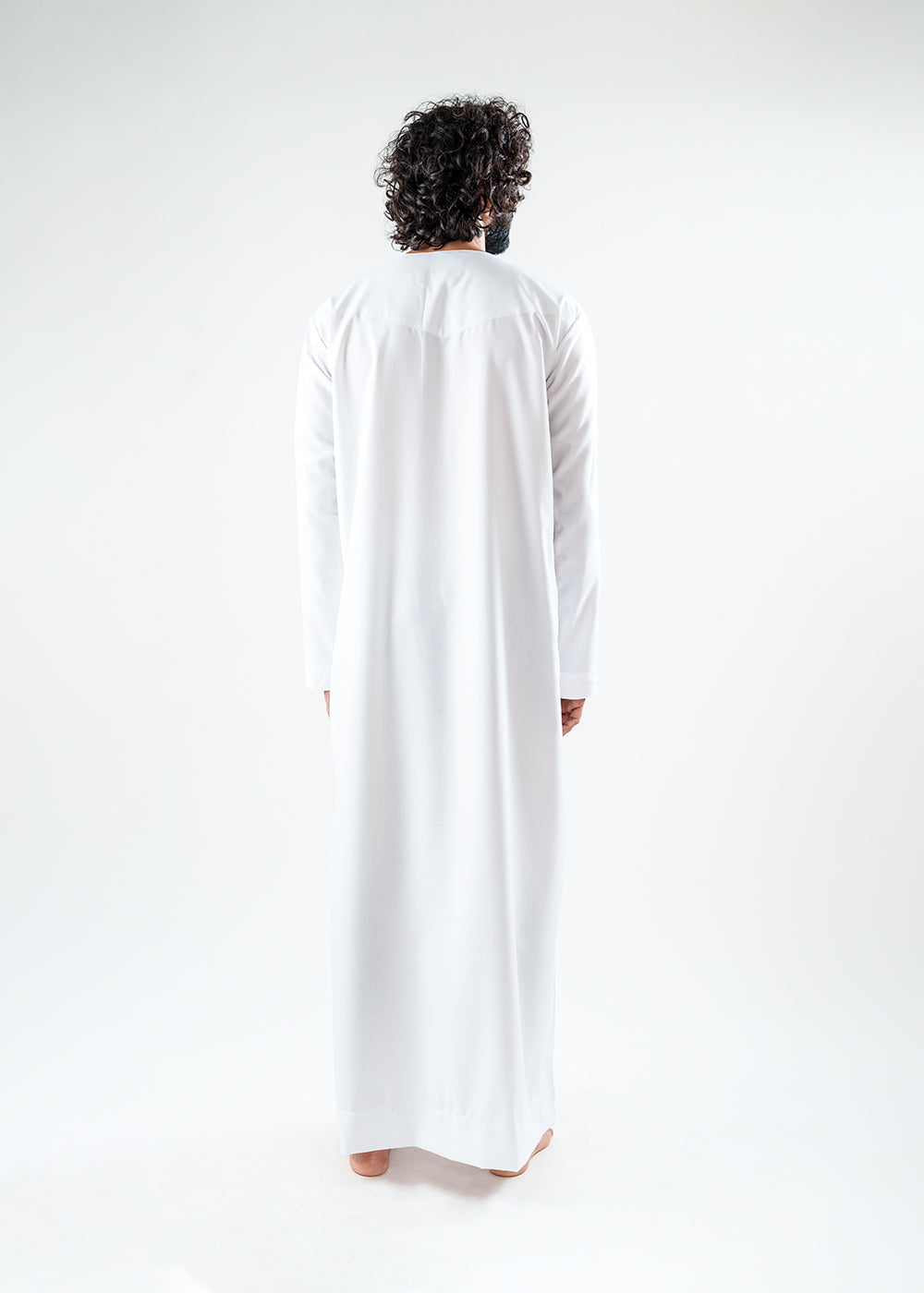 Introducing our Classic Emarati White Thobe, a symbol of elegance and tradition reimagined for the modern man. Expertly crafted from our premium TR cotton material, this thobe offers unparalleled comfort and durability. Featuring a unique zip front adorned with tasteful tassels, it exudes sophistication and charm. Two side pockets add functionality without compromising style, providing convenient storage for your essentials. Whether for formal gatherings or everyday wear, this timeless garment seamlessly blends traditional craftsmanship with contemporary design, making it a versatile staple for any wardrobe.