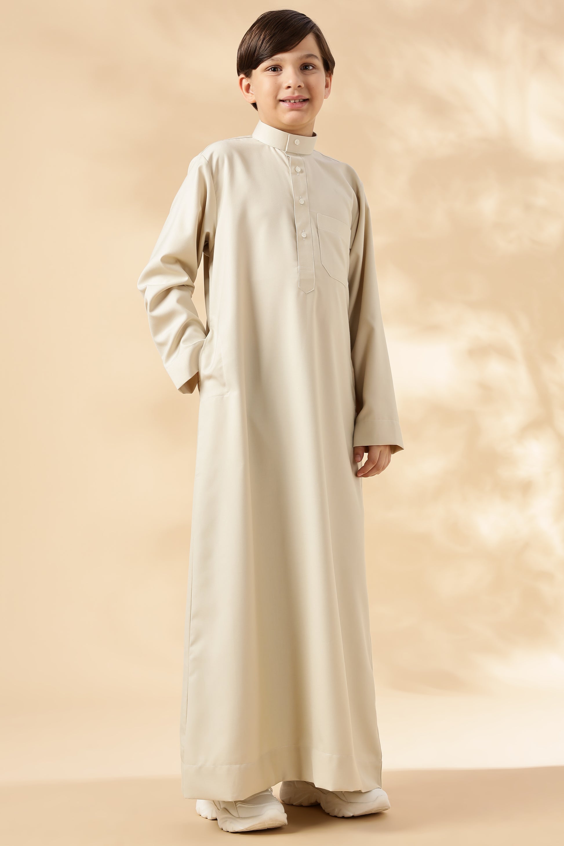Introducing the Everyday Saudi Nude Beige Thobe, designed in the classic Saudi style. Made from premium TR cotton, this thobe features a sturdy mandarin collar, two side pockets, and one front pocket, combining practicality with elegance. Perfect for daily wear, the Everyday Saudi Thobe offers both comfort and sophistication.