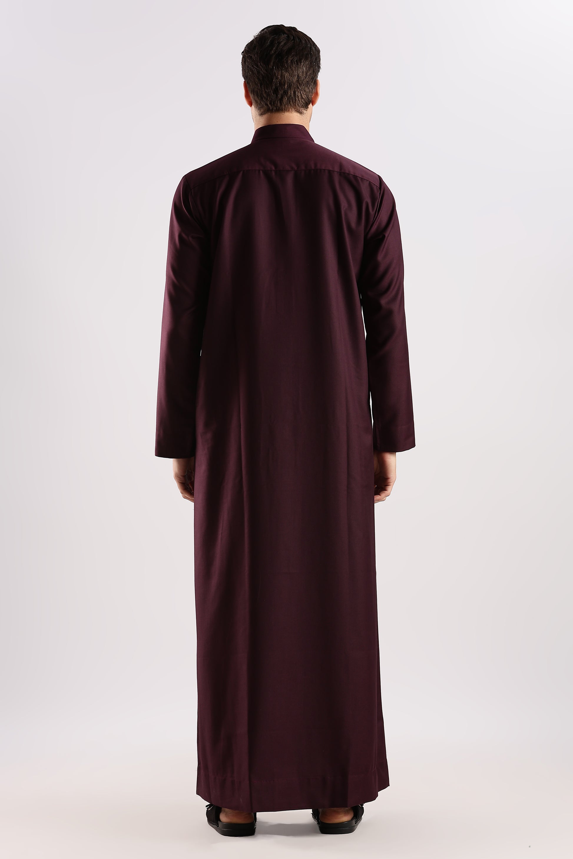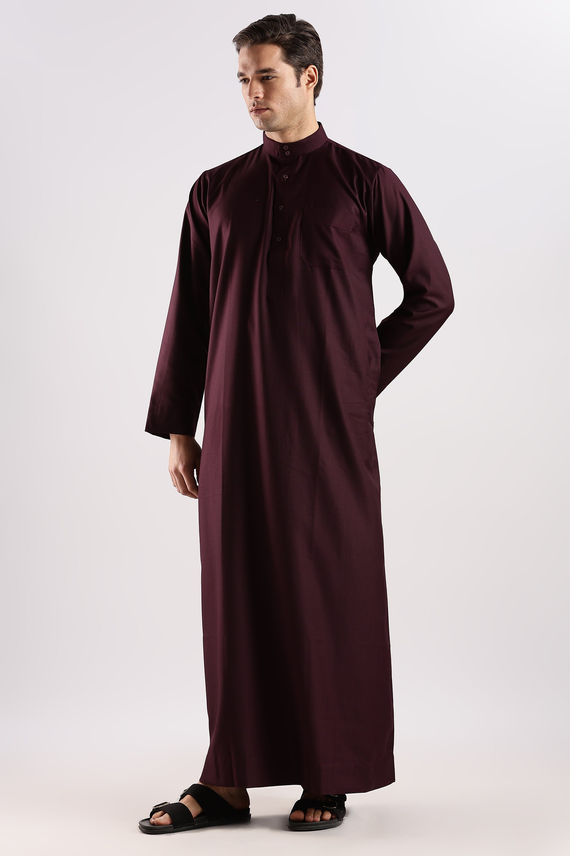 Introducing the Everyday Saudi Plum Purple Thobe, designed in the classic Saudi style. Made from premium TR cotton, this thobe features a sturdy mandarin collar, two side pockets, and one front pocket, combining practicality with elegance. Perfect for daily wear, the Everyday Saudi Thobe offers both comfort and sophistication.