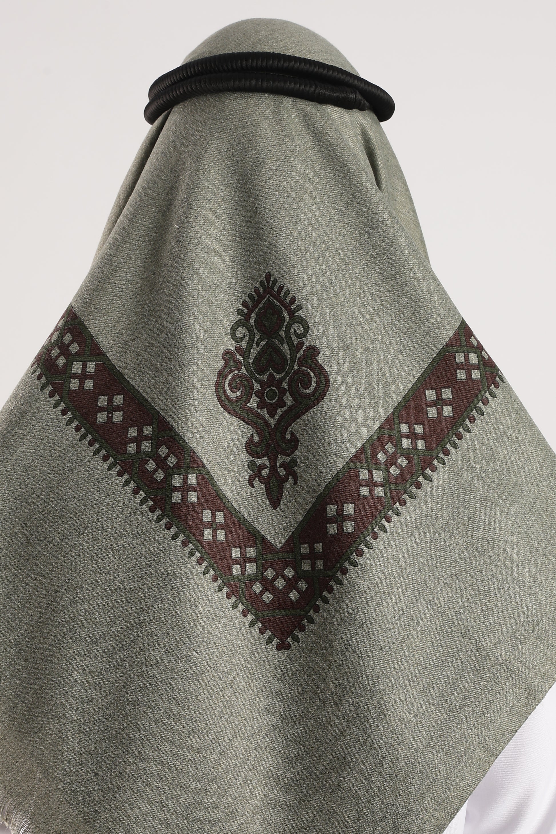 A statement of timeless elegance — the Green Embossed Kashmir Shemagh combines classic Kashmiri artistry with modern sophistication. The warm copper tone radiates understated luxury, while the intricate embossed border design adds depth and heritage-inspired charm. Perfect for refined occasions or effortless everyday grace, this shawl drapes beautifully with a soft, smooth fall.