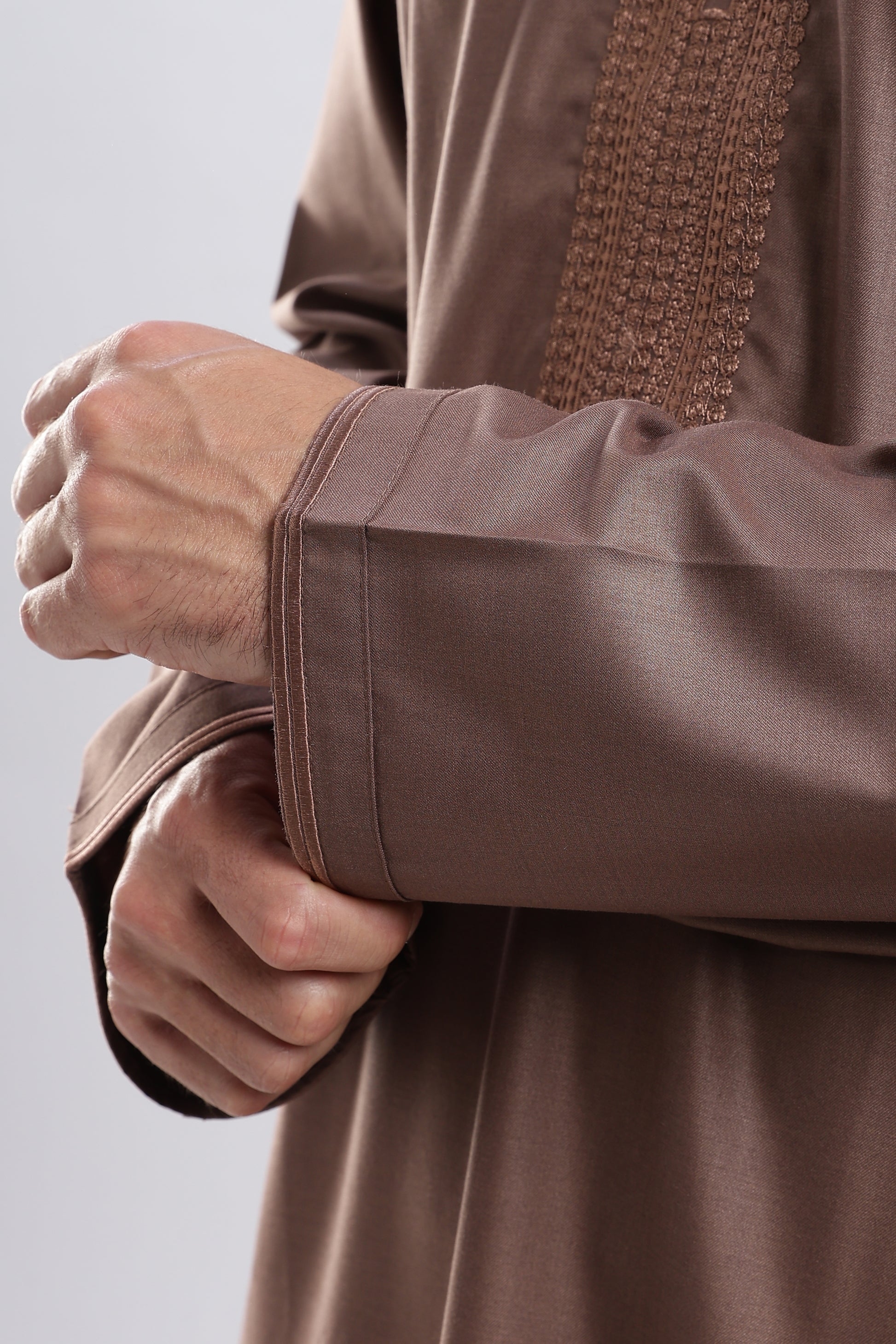 Designed for those who appreciate subtle artistry and effortless comfort, the Hayat Moroccan Mocha Brown Thobe brings a distinctive touch to your Ramadan wardrobe. Its Moroccan-inspired detailing reflects a heritage of craftsmanship while maintaining a clean, contemporary silhouette suitable for both worship and social gatherings.